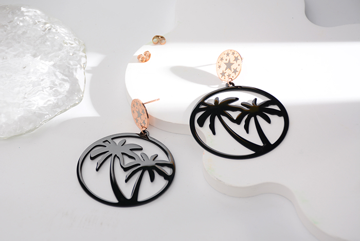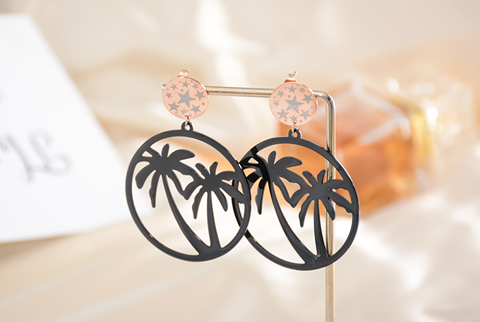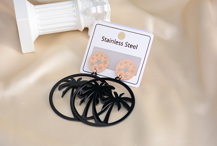 European, American and Korean fashion exaggerated big tree black piece earrings, large round titanium steel earrings, rose gold jewelry, women's trendy style