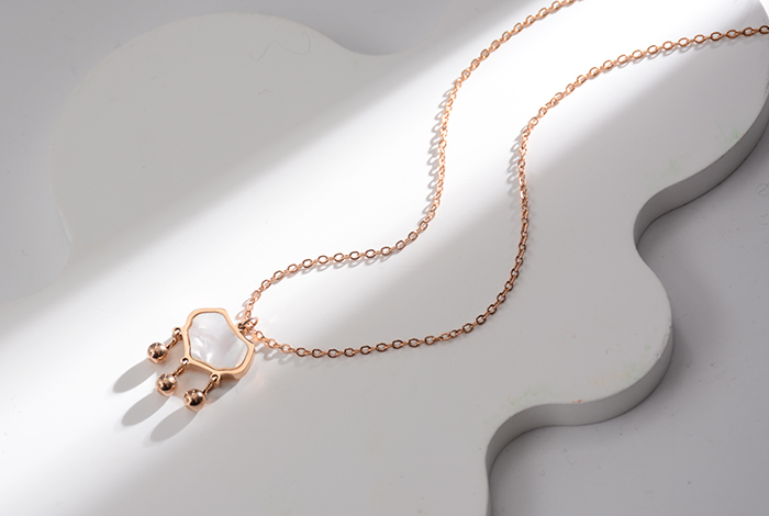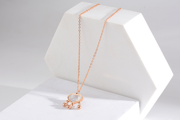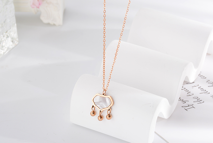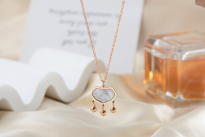 European, American and Korean fashion retro shell longevity lock bead necklace, titanium steel plated 18k rose gold women's accessory collarbone chain, versatile