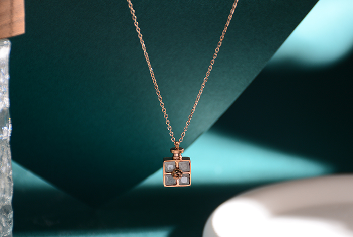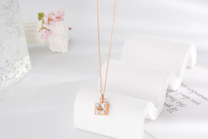 European, American and Korean fashion zircon bottle necklace, titanium steel plated 18k rose gold collarbone chain, non-fading women's jewelry