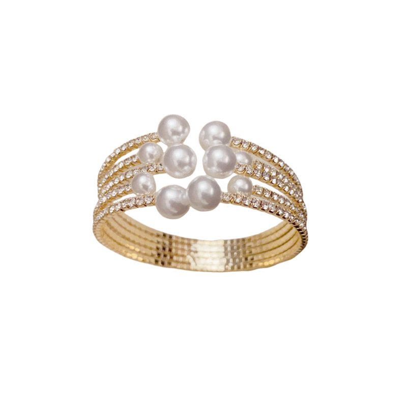 European and American Amazon cross-border personalized, fashionable, exaggerated multi-layer full diamond pearl elastic bracelet, simple and versatile wristband for women