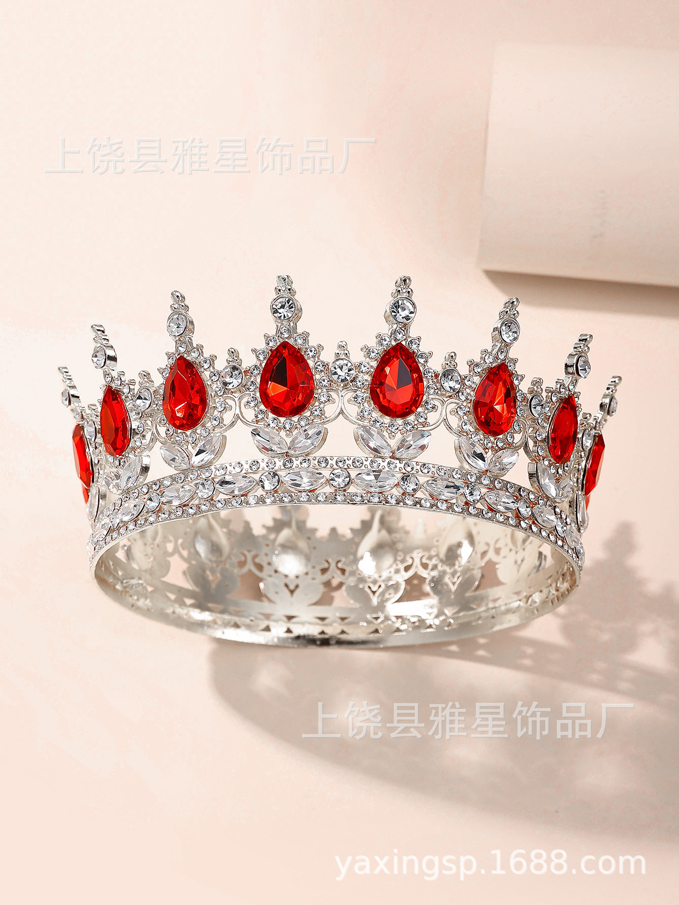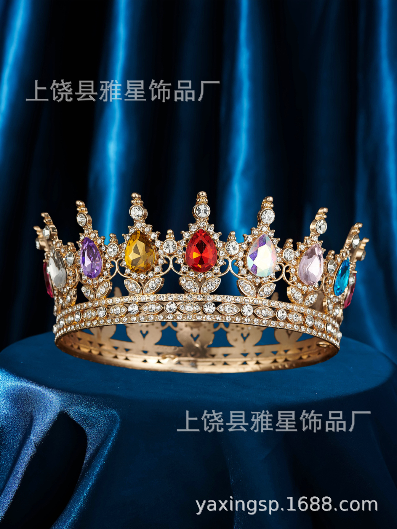 European and American cross-border bride round crown headwear, Baroque colorful crystal hair accessory, noble and elegant queen's full circle crown