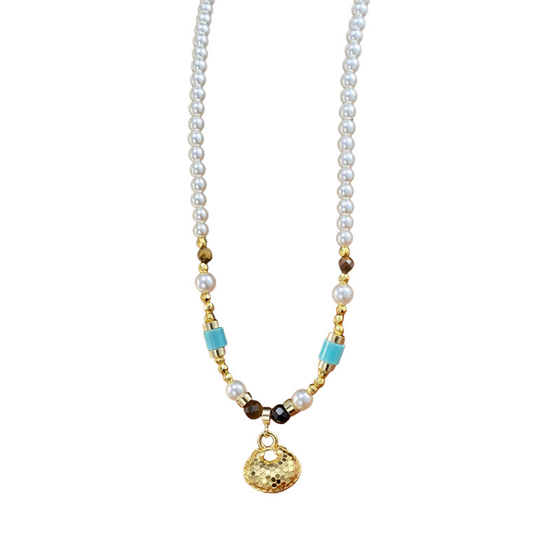 European and American cross-border fashion, gentle and versatile metal sequined lucky bag pearl necklace, individual, light luxury and simple collarbone chain for women