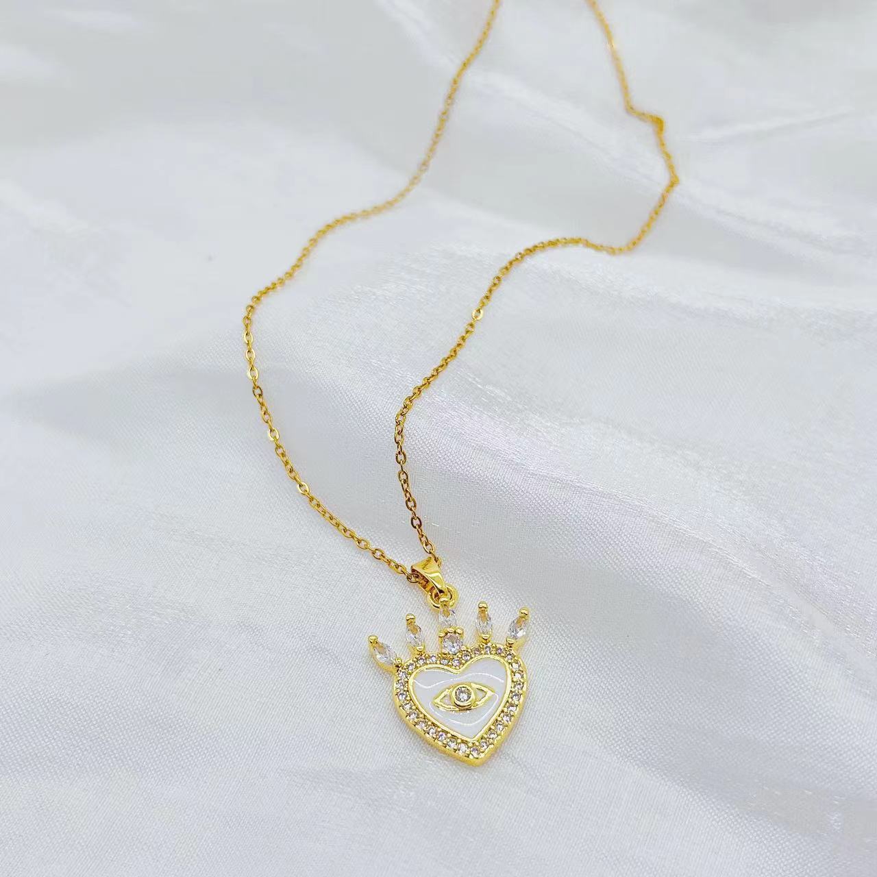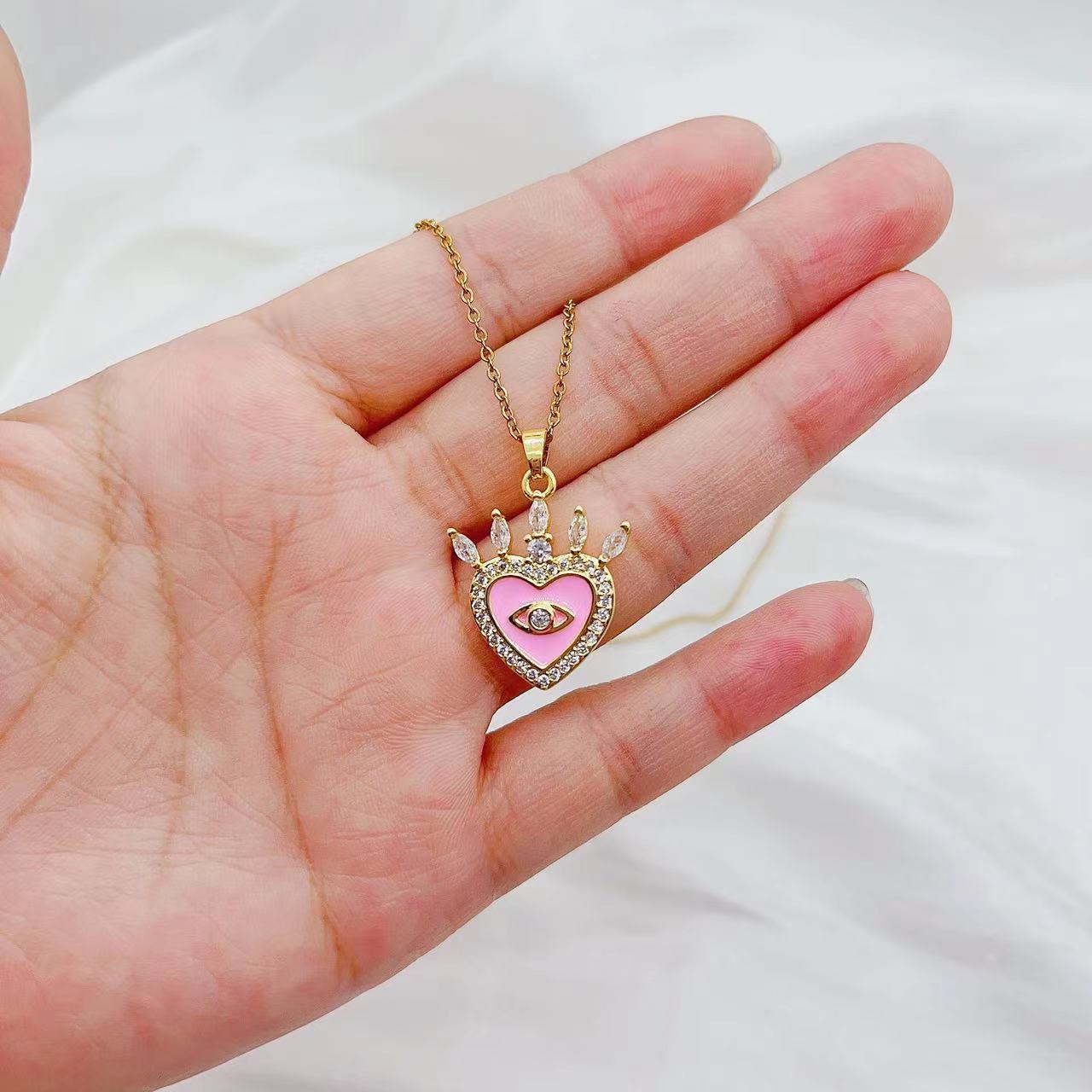 European and American cross-border oil-infused colored zircon heart-shaped devil's eye, personalized, fashionable, versatile, light luxury, INS style necklace for women