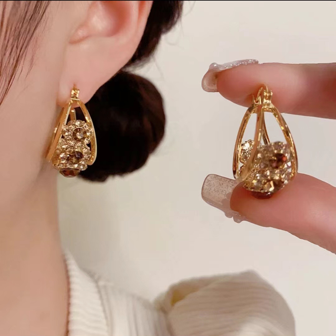 European and American fashion exaggerated full diamond tassel earrings, long earrings for elegant ladies, internet-famous earrings, slimming ear studs