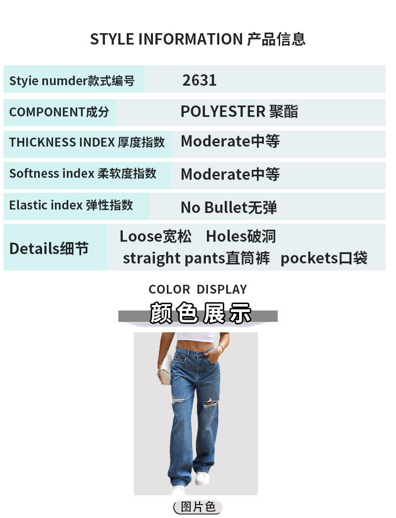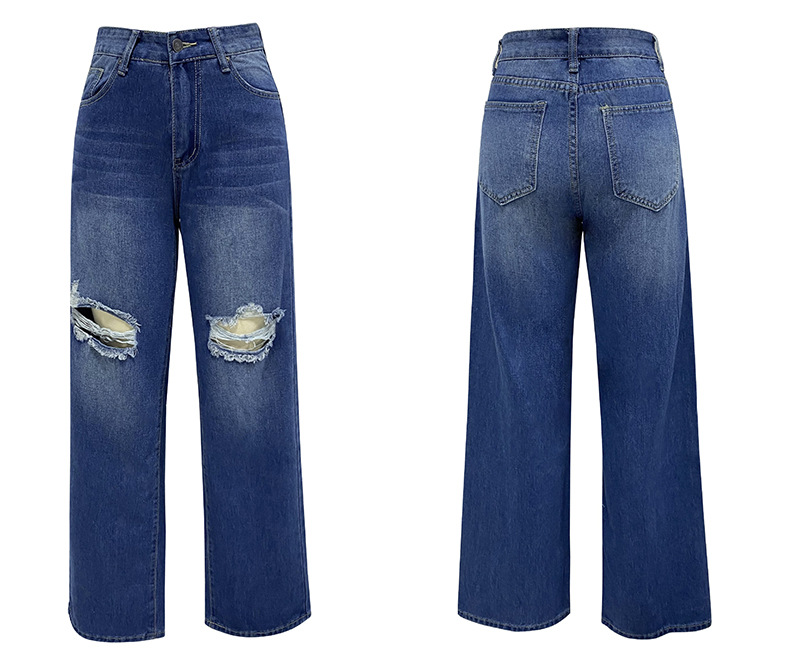 European and American foreign trade 2023 new women's high-waisted loose casual ripped jeans washed wide-leg straight-leg pants for women