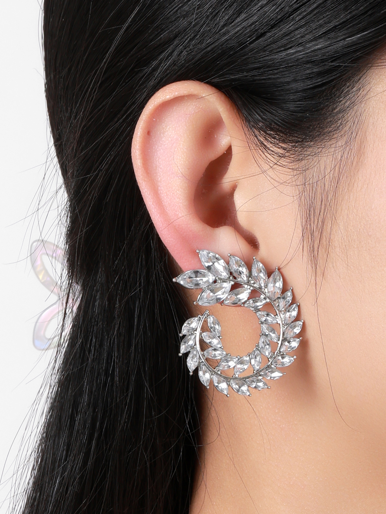 European and American foreign trade best-selling fashionable design vortex alloy leaf zircon stud earrings, exaggerated feather branch rear-hanging water diamond leaf ladies' stud earrings