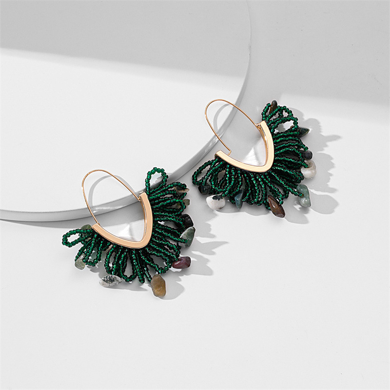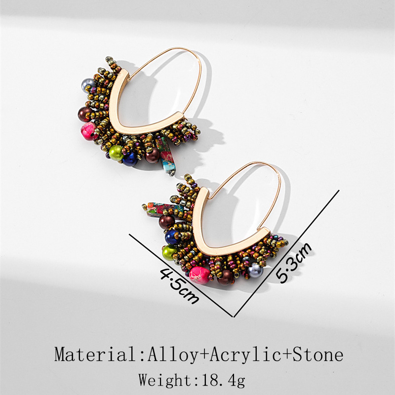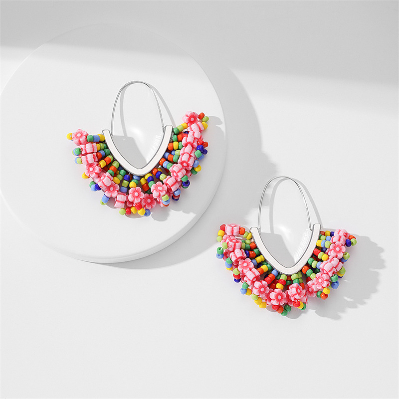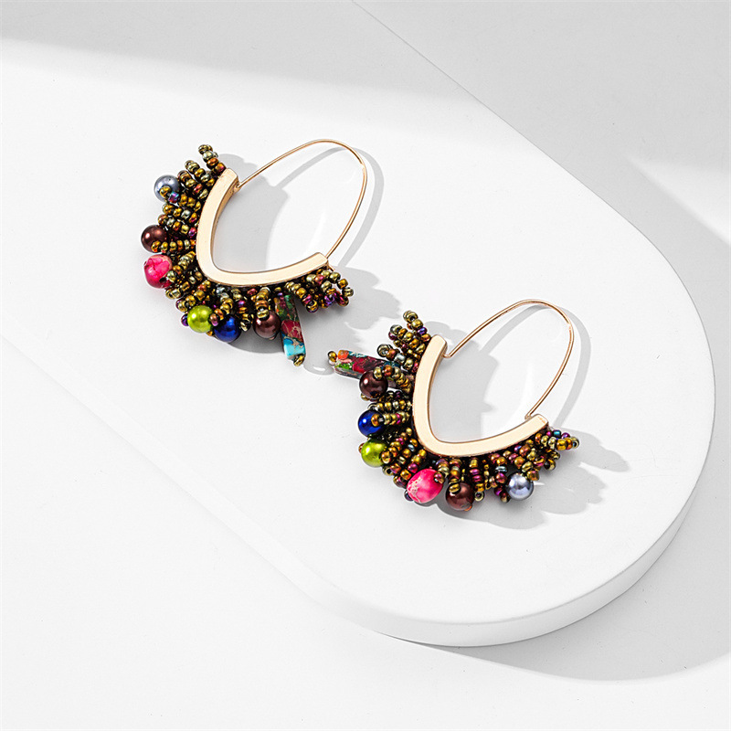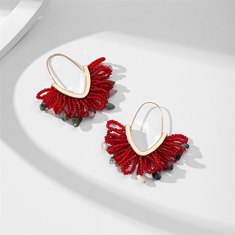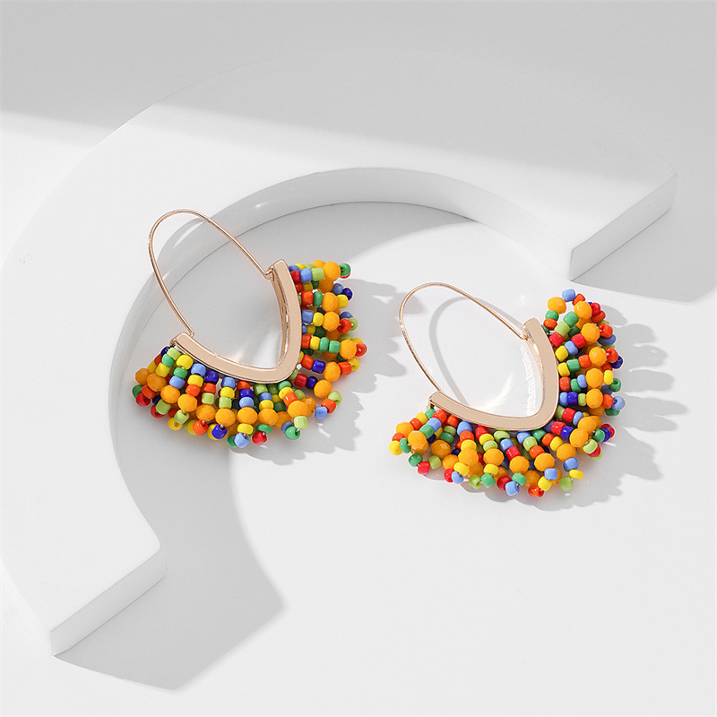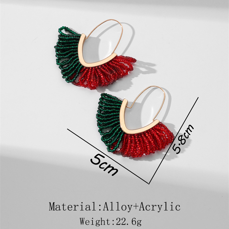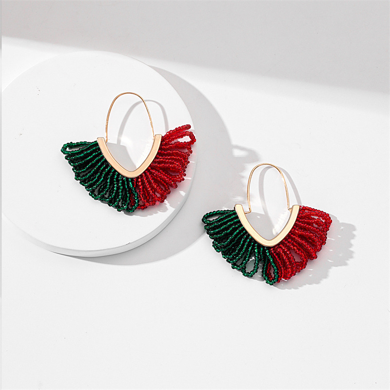European and American hand-woven rice bead Christmas earrings, cross-border best-selling women's handcrafted large V-shaped tassel earrings wholesale