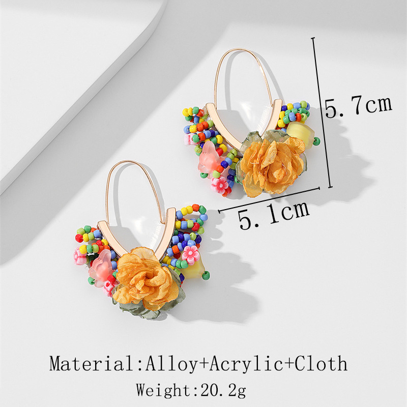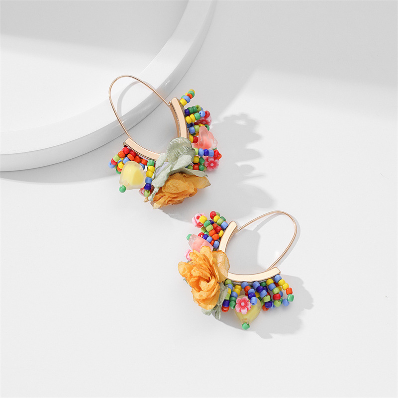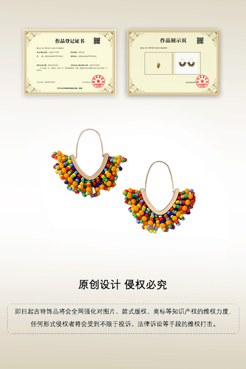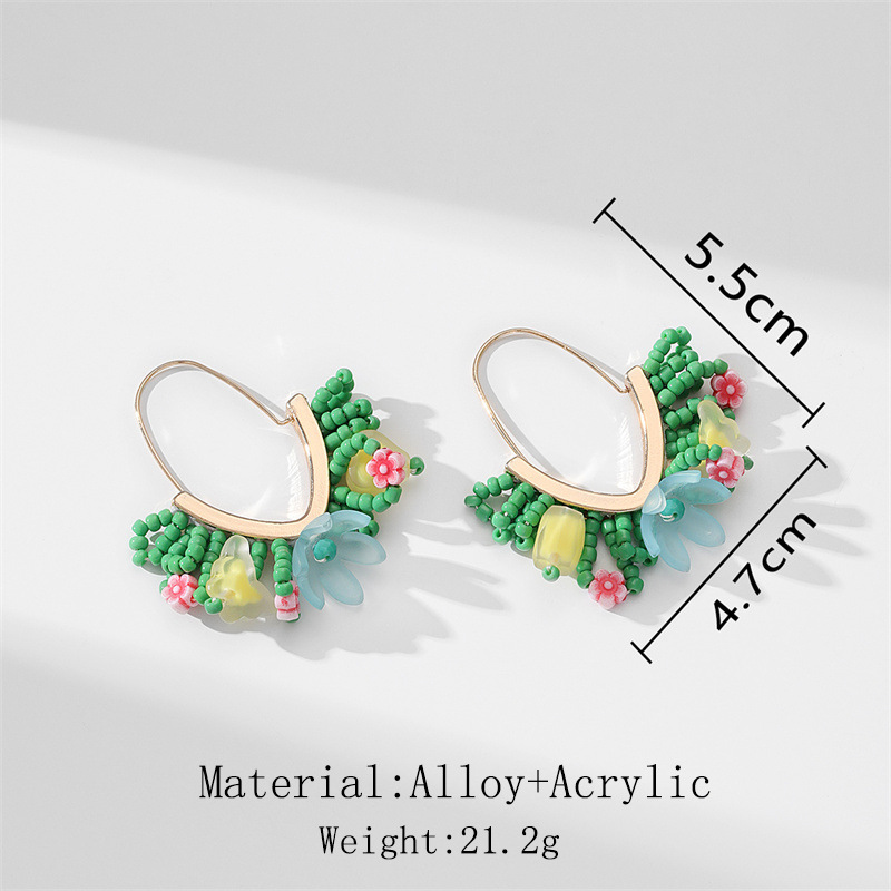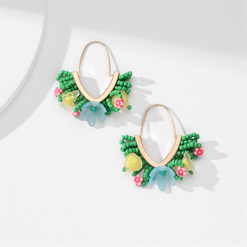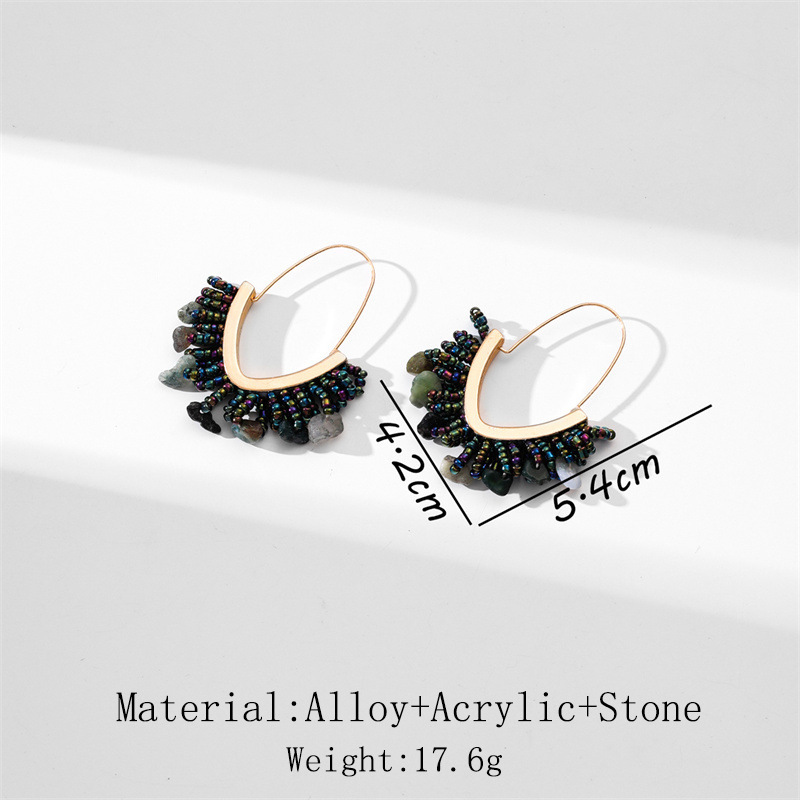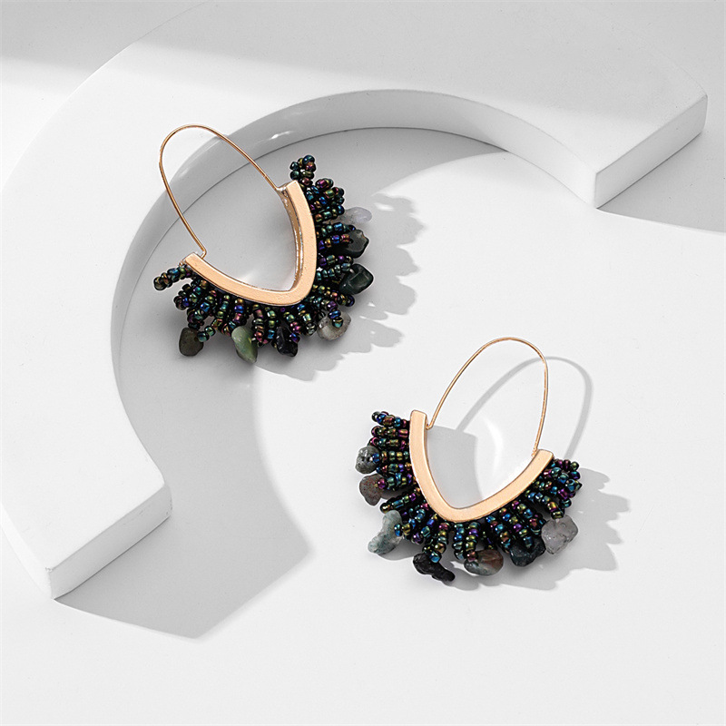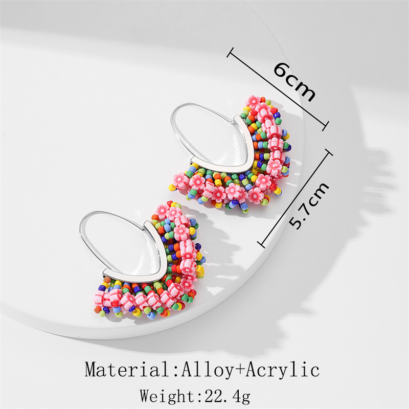 European and American hand-woven rice bead Christmas earrings, cross-border best-selling women's handcrafted large V-shaped tassel earrings wholesale