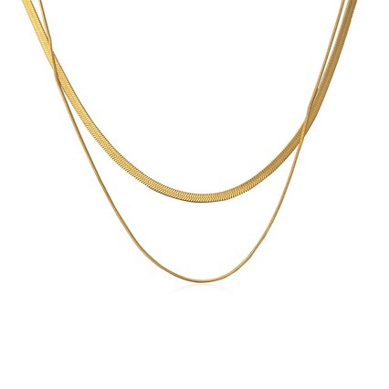 European and American InS-style fashionable titanium steel double-layer snake bone chain, plated and stacked necklace, women's fashionable short collarbone chain that does not fade