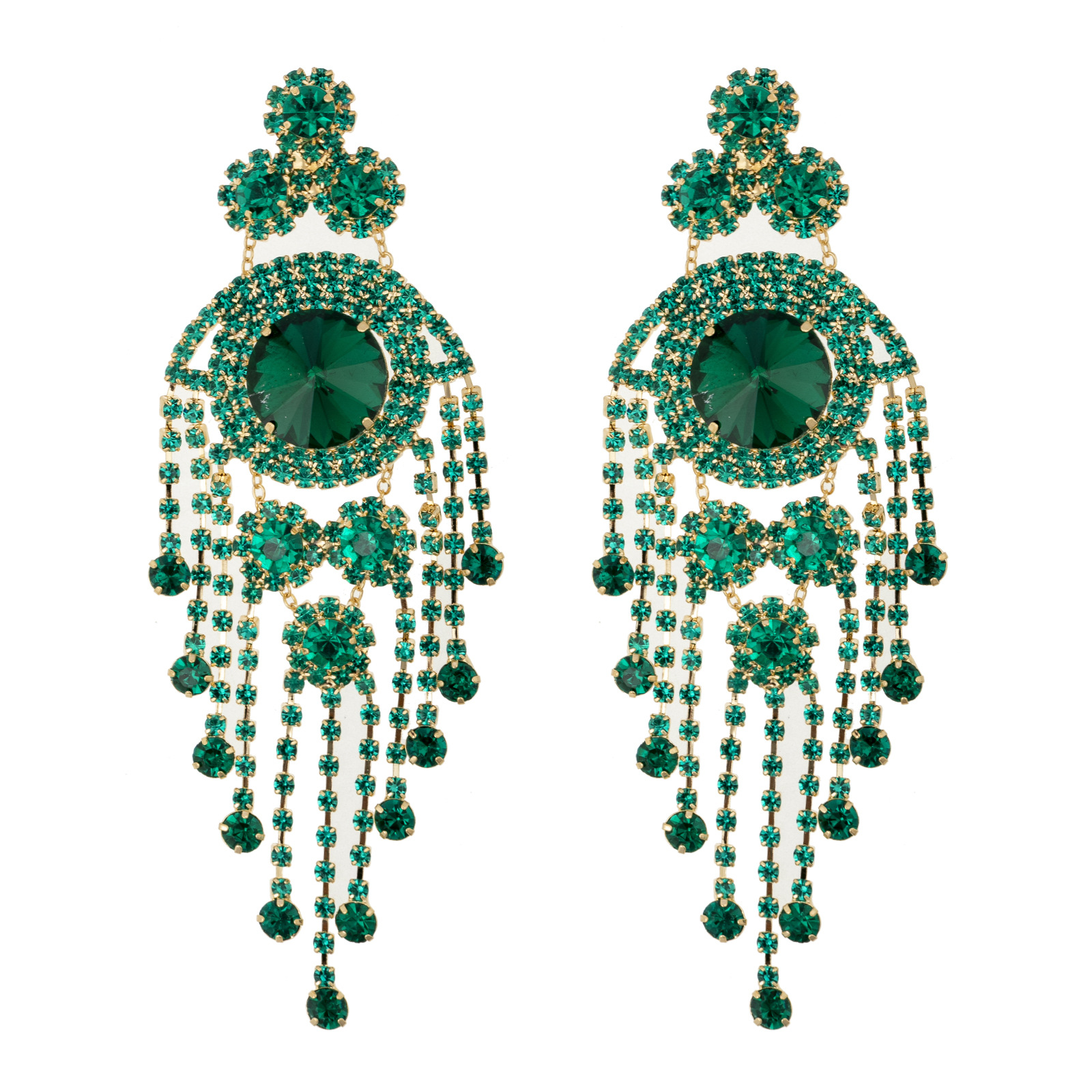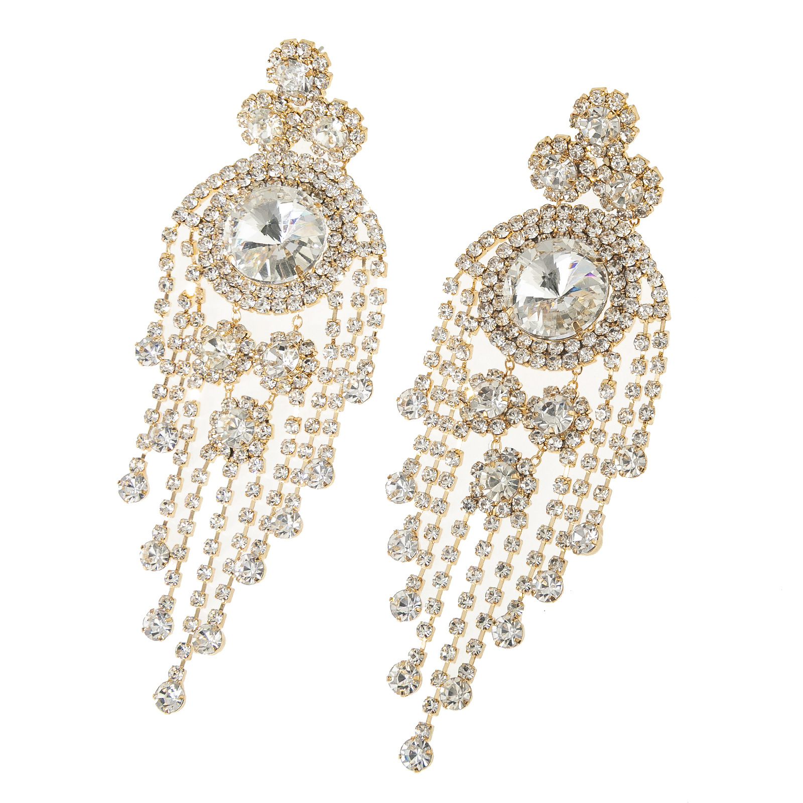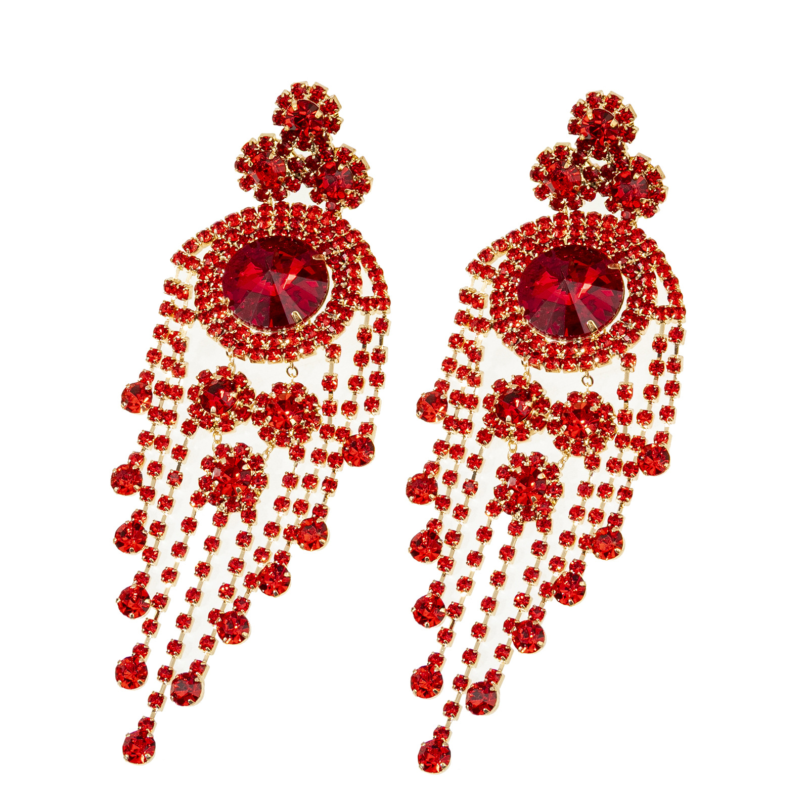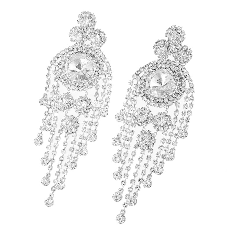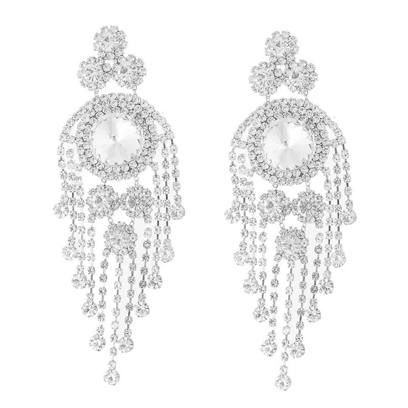 European and American luxury heavy industry colorful tassel earrings, exaggerated and gorgeous water diamond earrings, long women's style, elegant and trendy, individual geometric full diamond earrings, cross-border wholesale