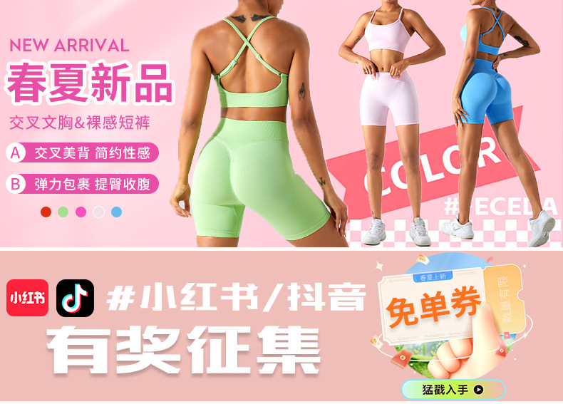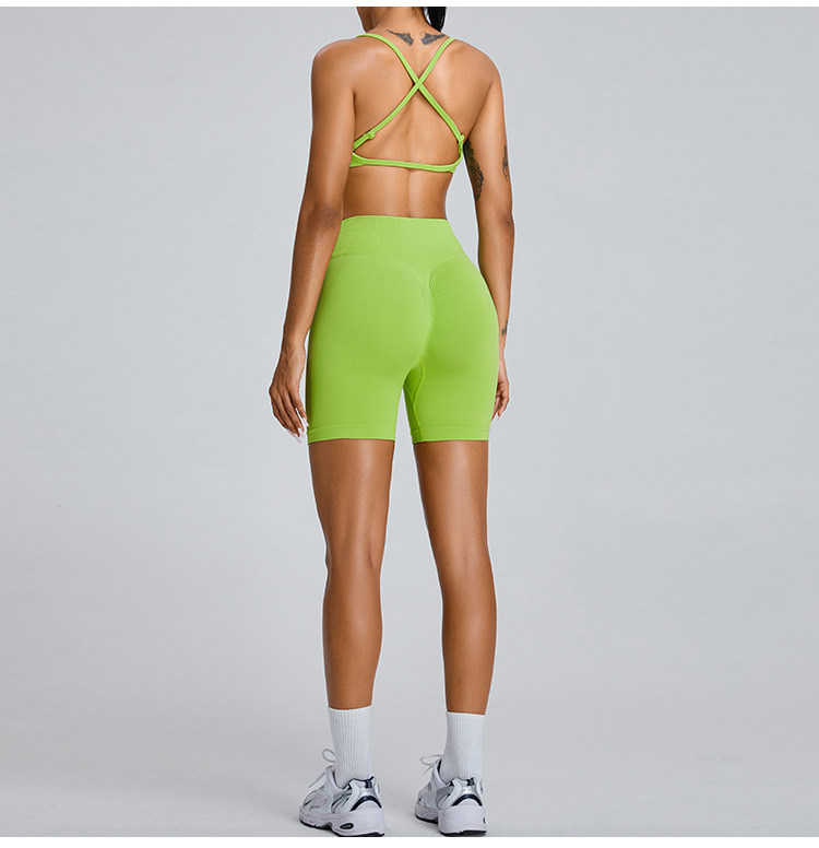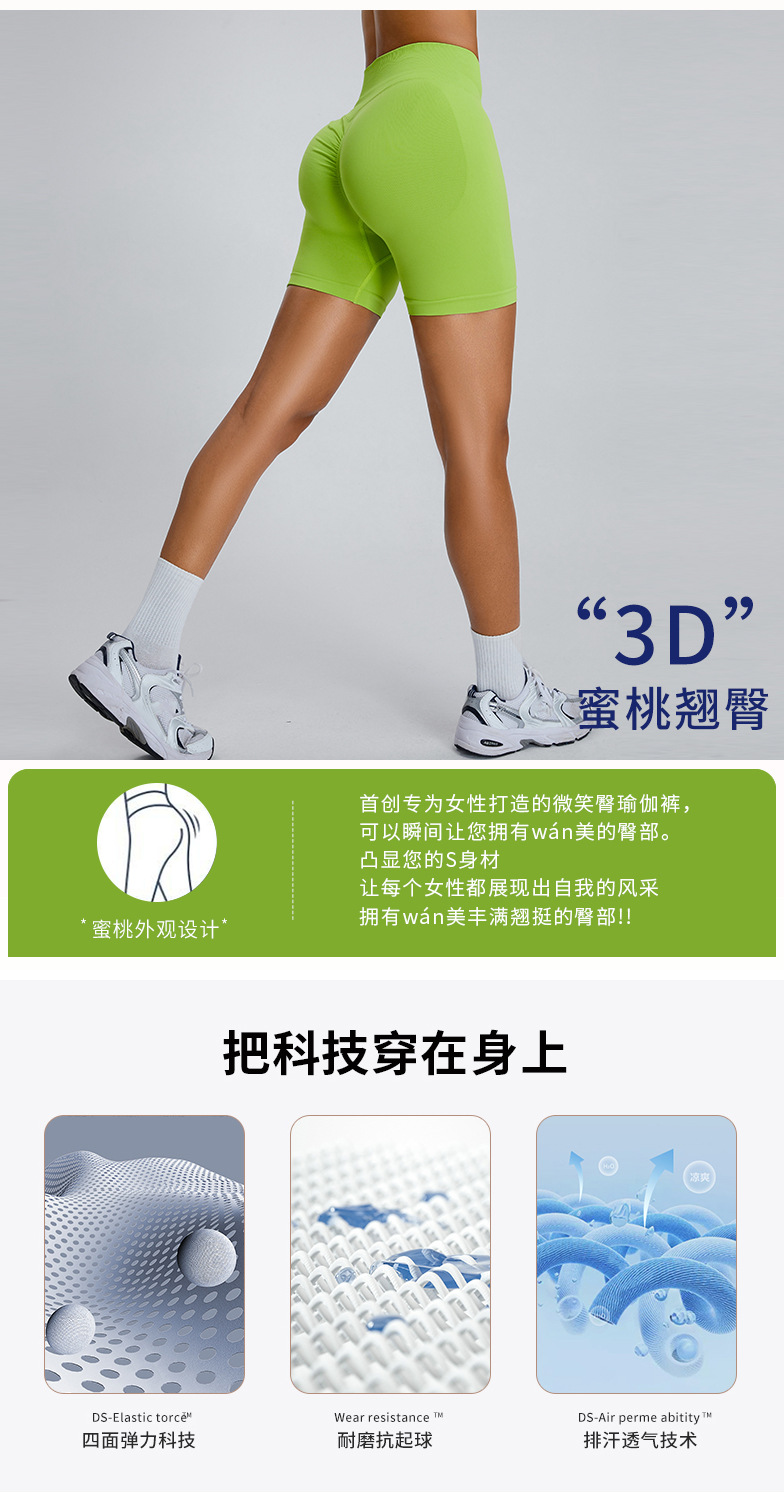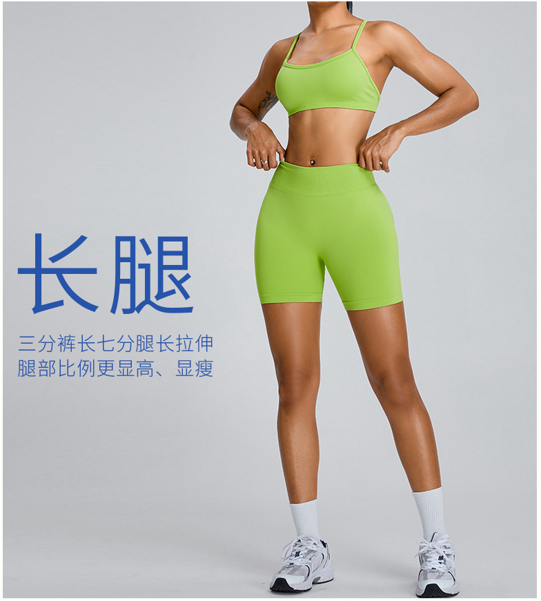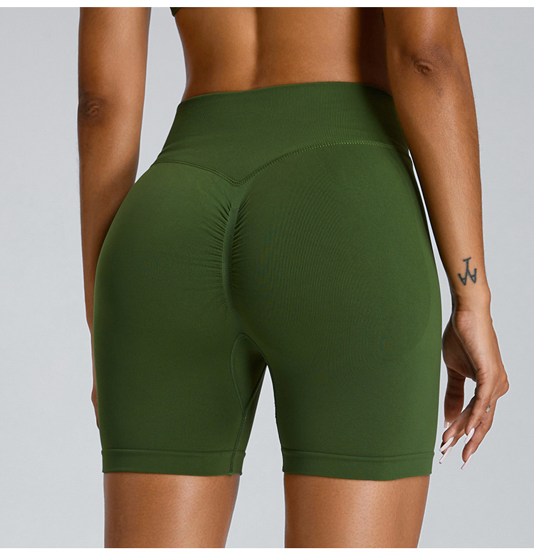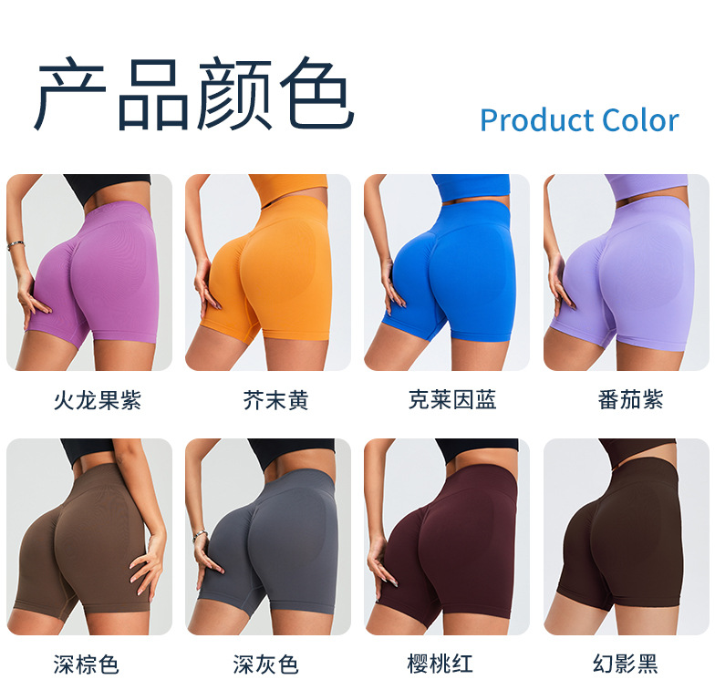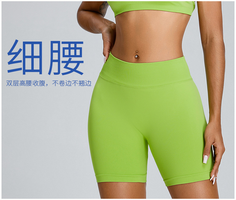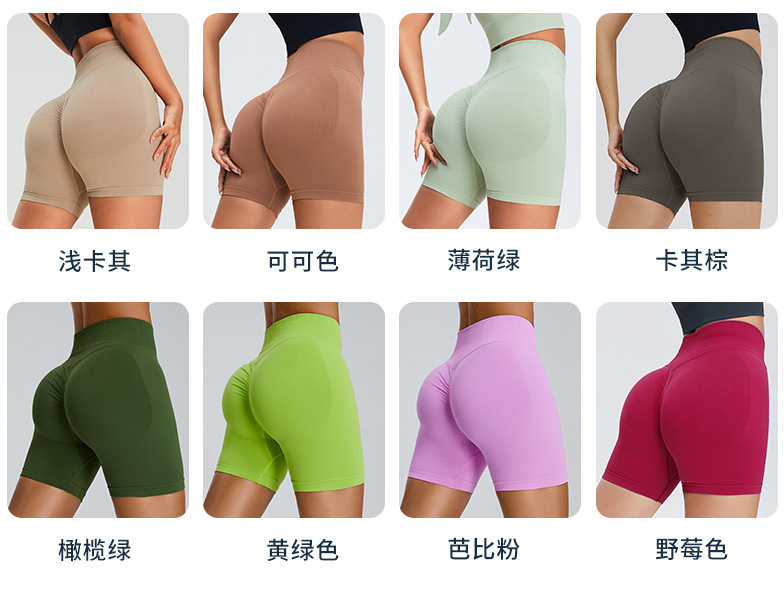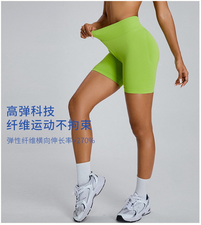 European and American seamless three-part fitness shorts, women's high-waisted peach hip-lifting sports shorts, tight quick-drying yoga shorts