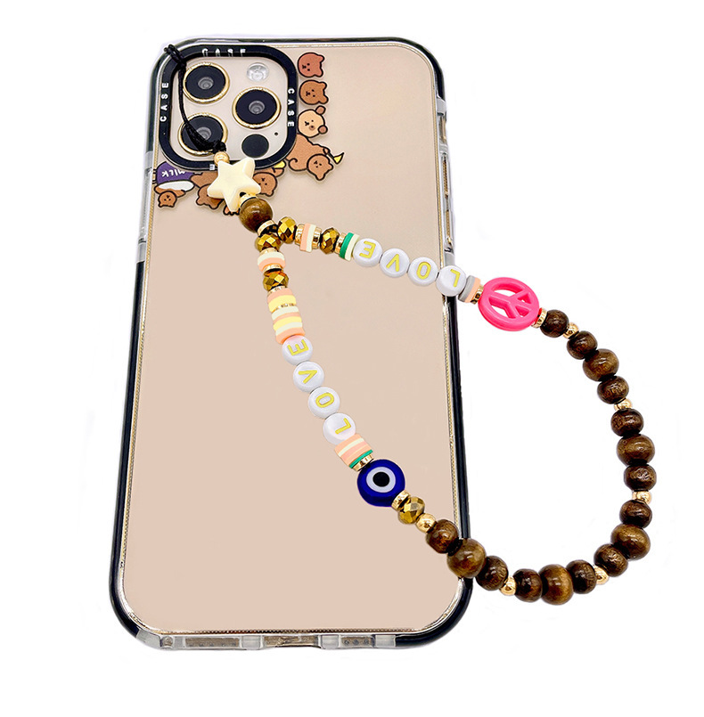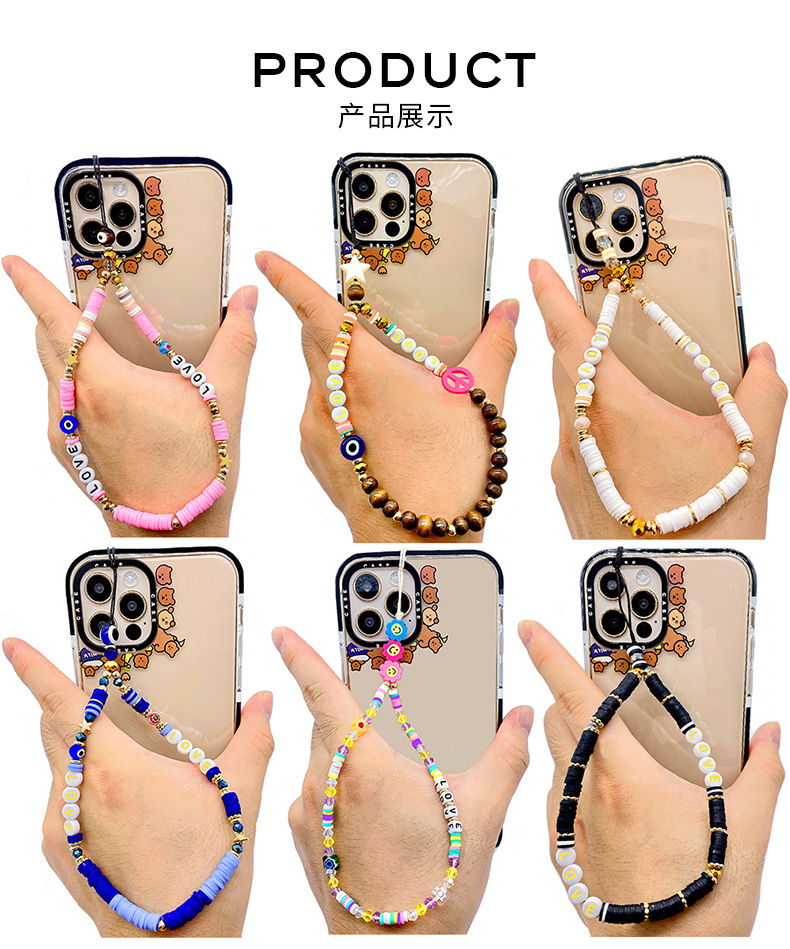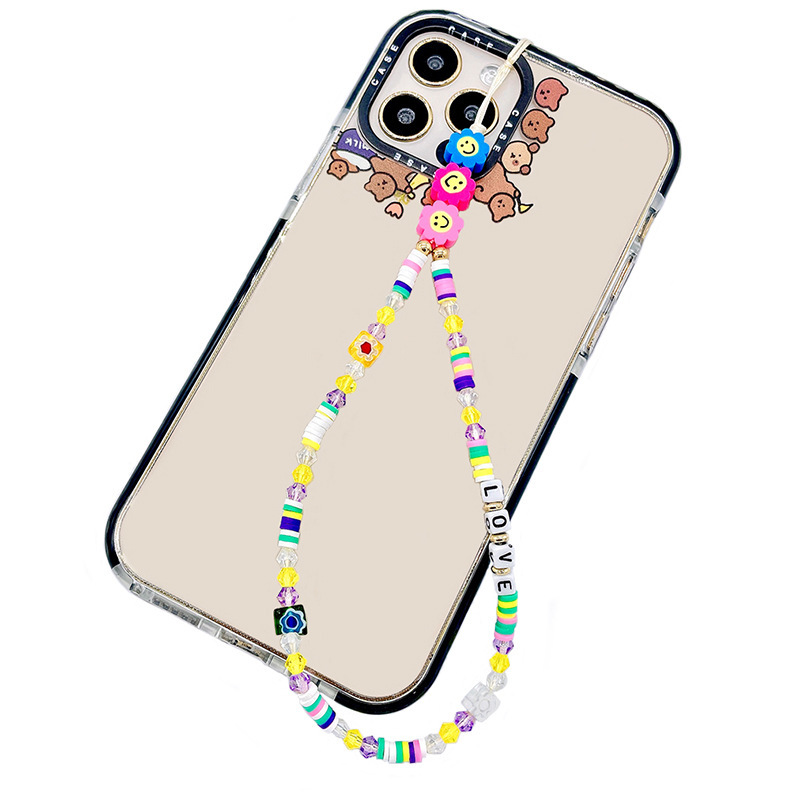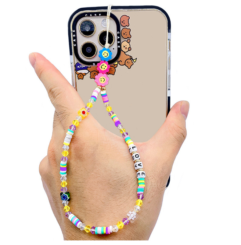 European and American soft clay mobile phone pendant chain, acrylic letter "LOVE" beaded mobile phone chain, couple mobile phone pendant rope for women
