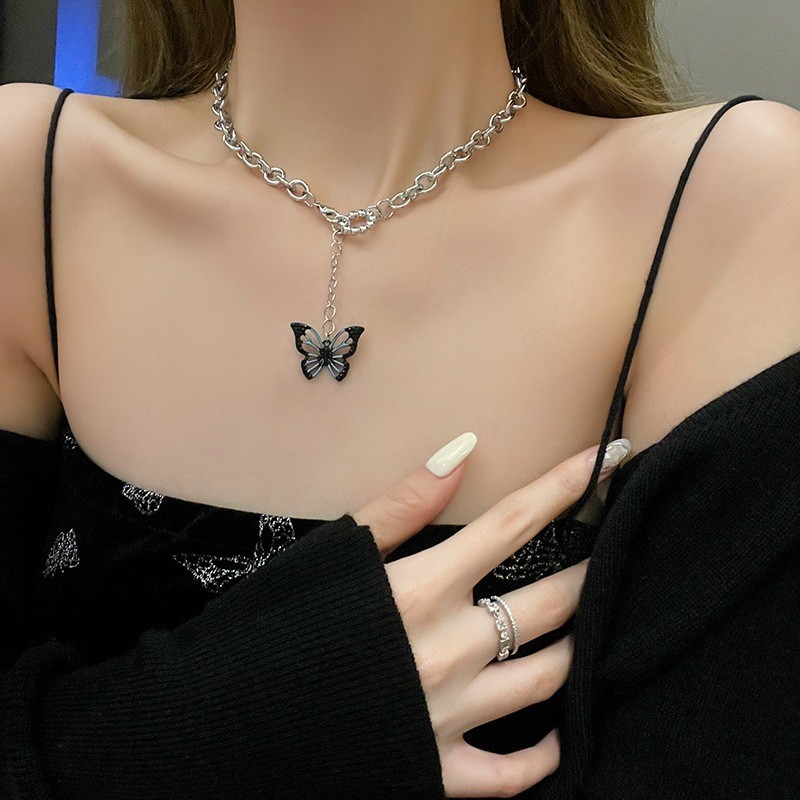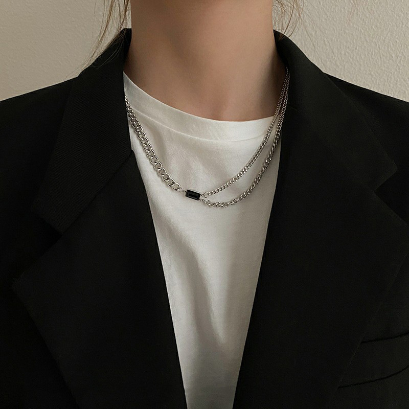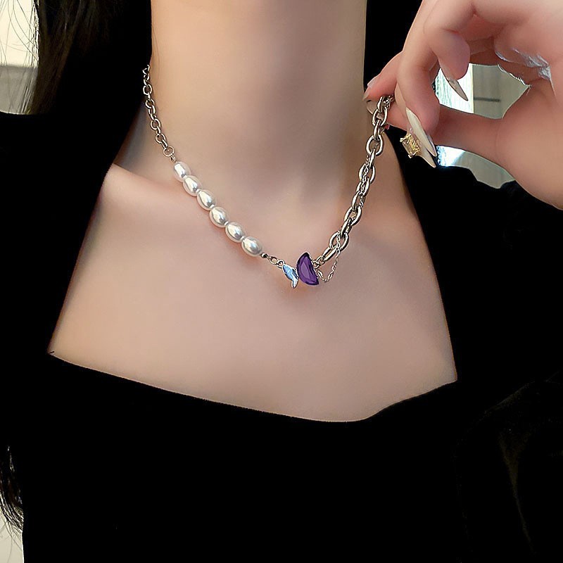 European and American style pearl titanium steel non-fading necklace, women's niche design sense, ins high-end feel, Internet celebrity hip-hop collarbone chain pomelo ear