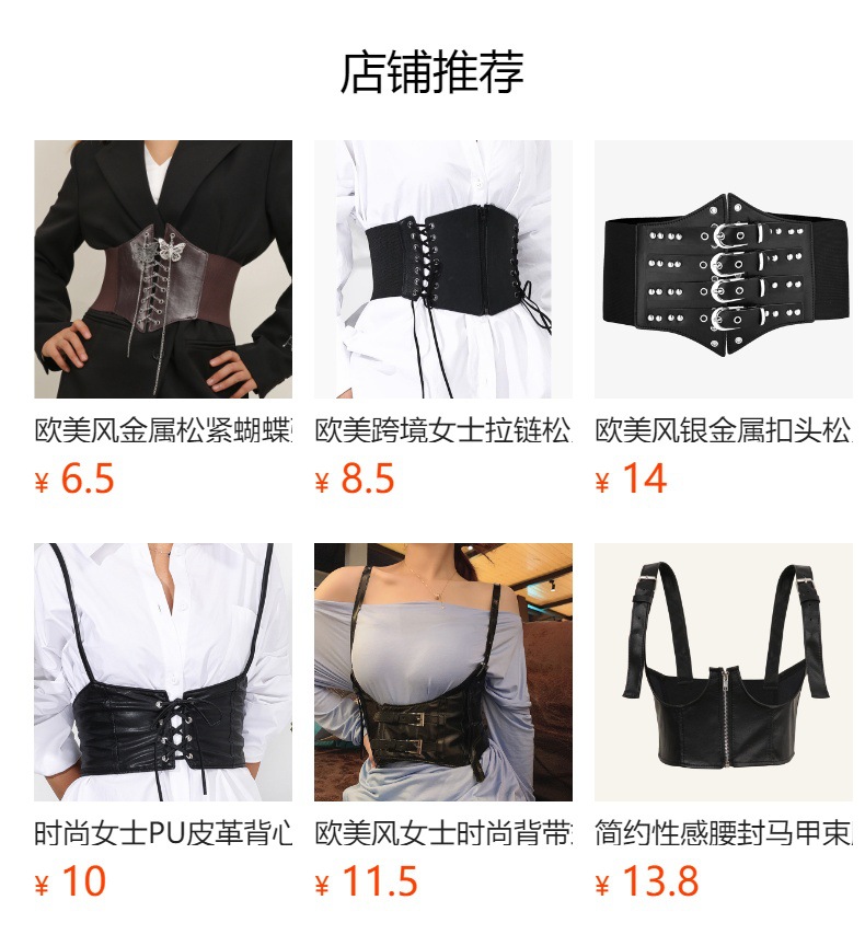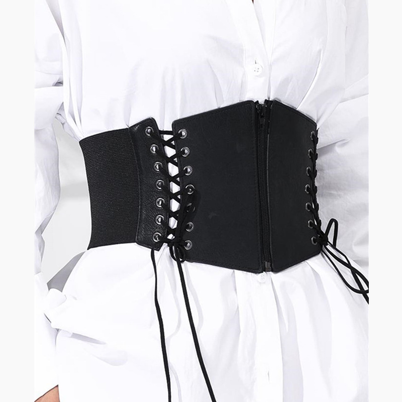 European and American cross-border women's zipper tightness waist seal zipper threading design wide belt plastic waist paired with dress belt