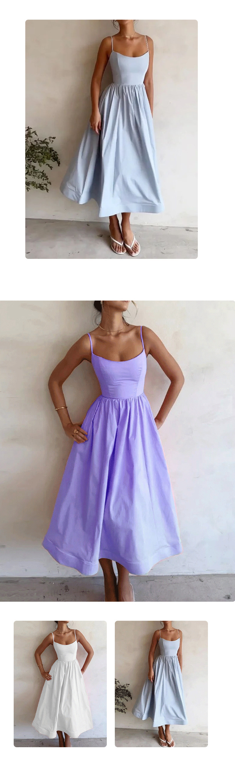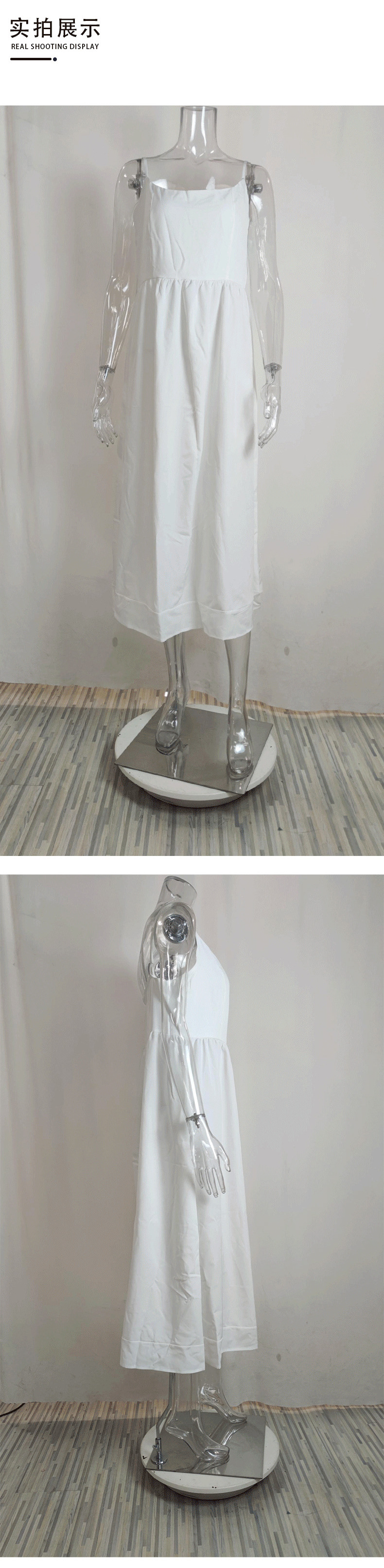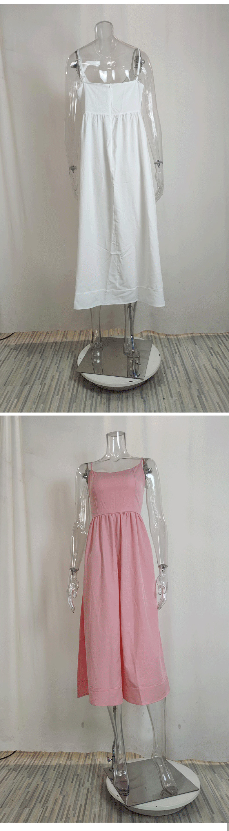 European and American women's clothing 2024 Summer export new solid color sexy U-neck waist-cinching pleated halter dress for women