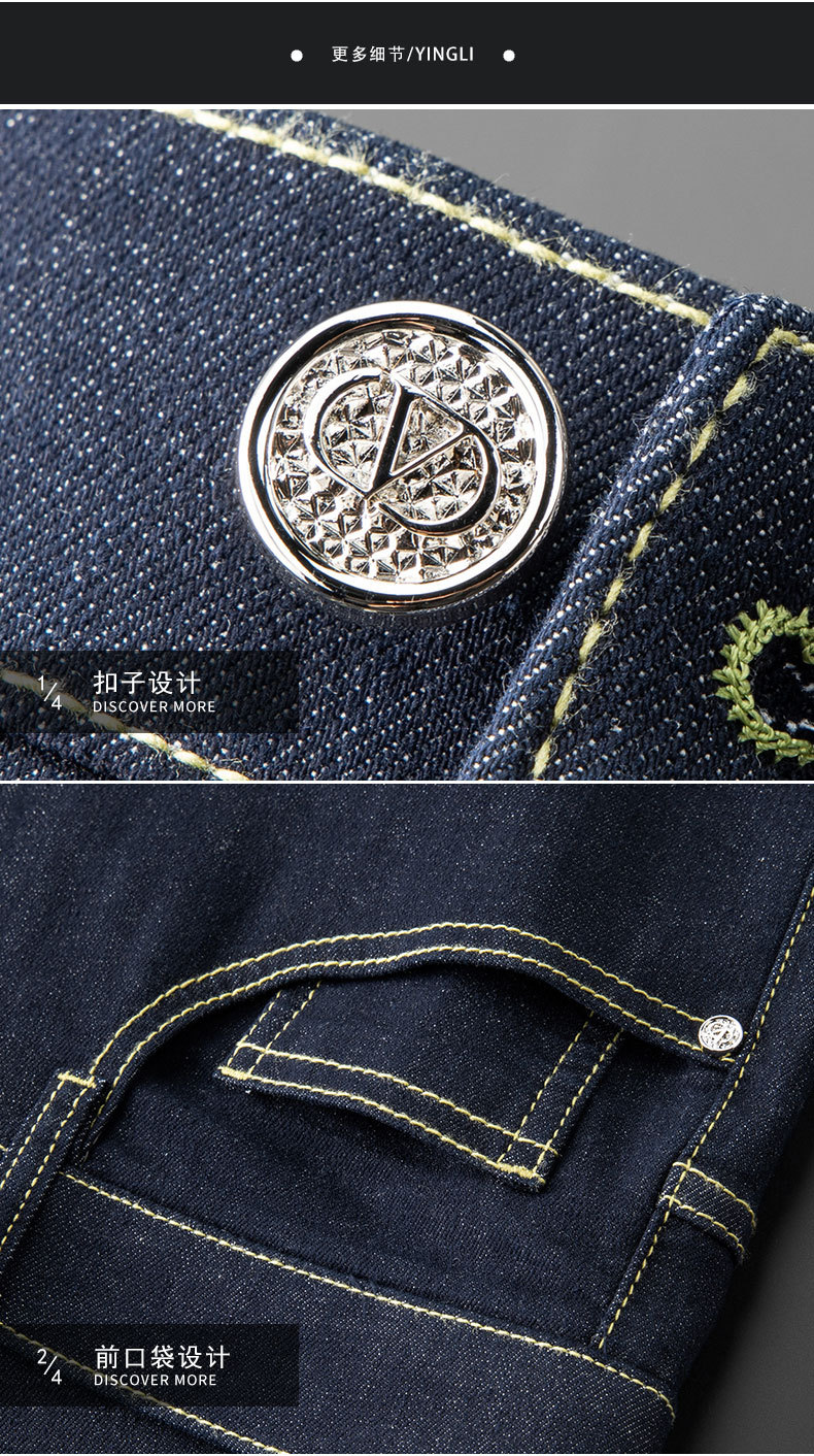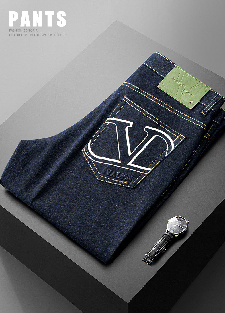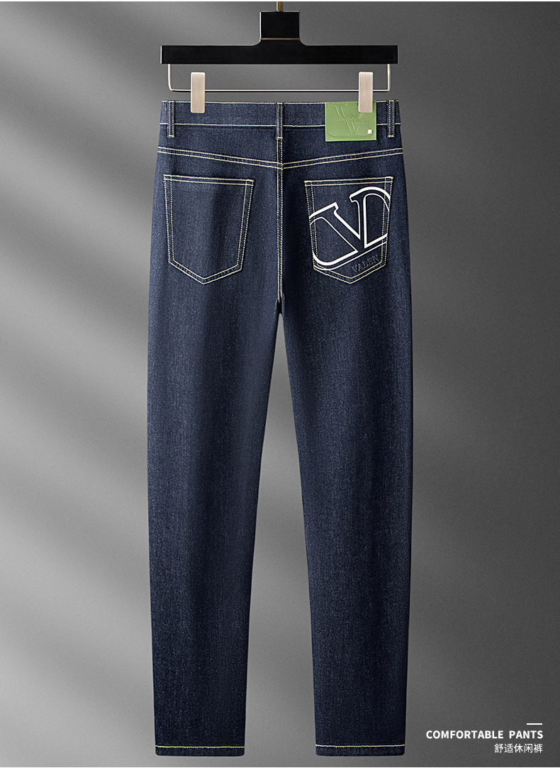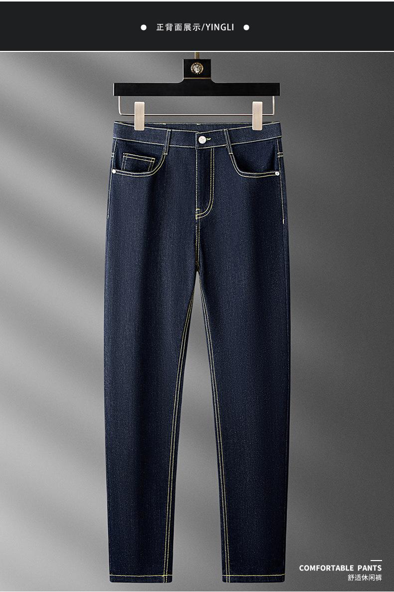 European Station big brand style spring thin blue jeans, men's slim-fit small straight leg high-end texture casual pants, men's trend