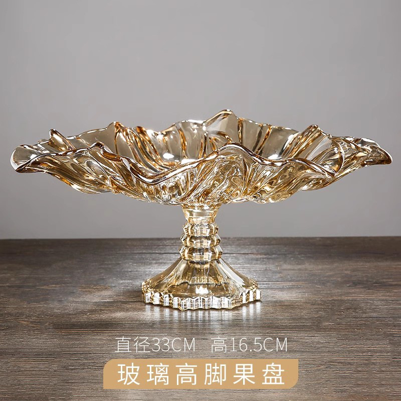 European-style crystal glass fruit plate, modern living room home fruit plate, creative coffee table, large, light luxury dried fruit Zero Tingsheng