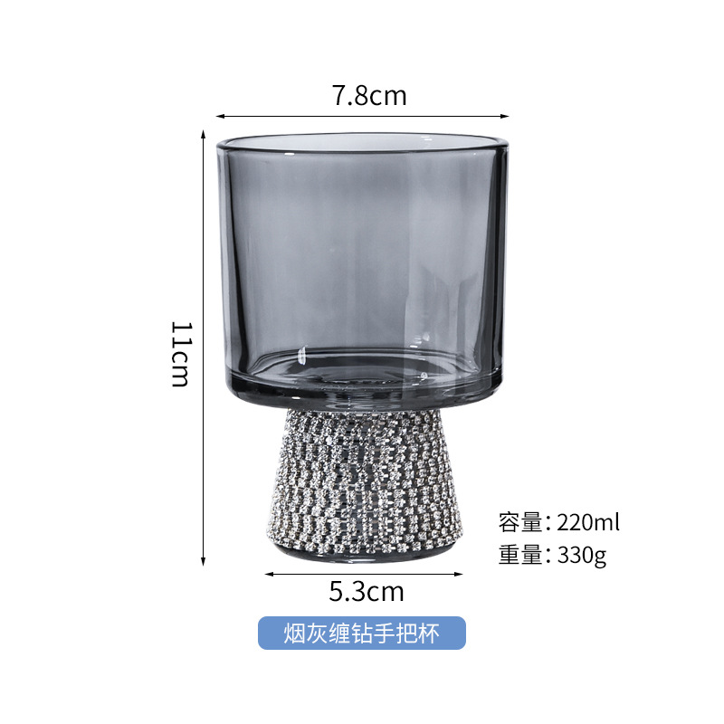 European-style diamond high-footed wine glasses, crystal diamond-encrusted glass cups, high appearance level with handles, chicken-tail cups, large-bellied diamond-encrusted water cups