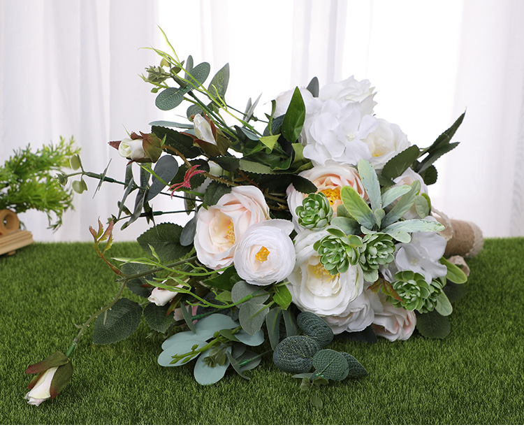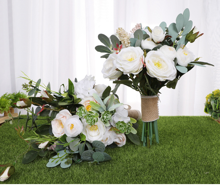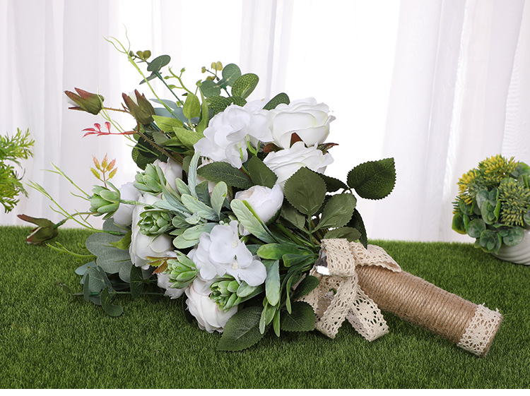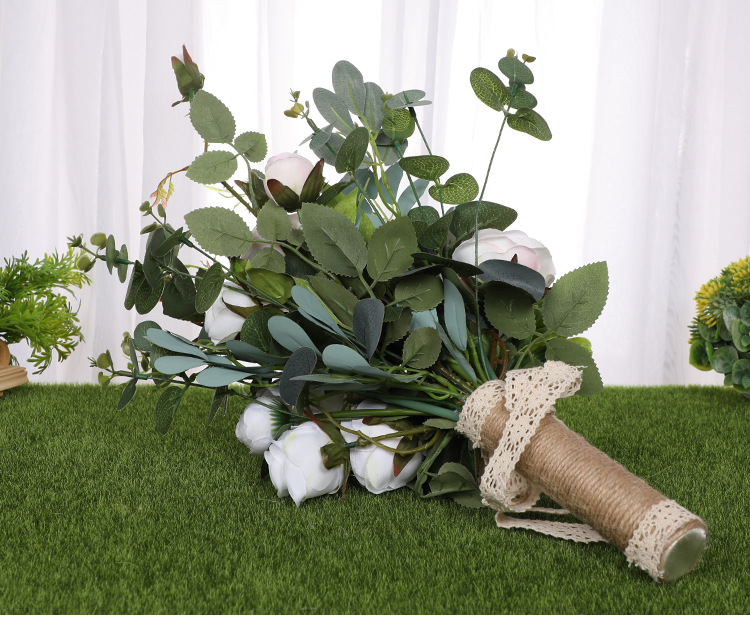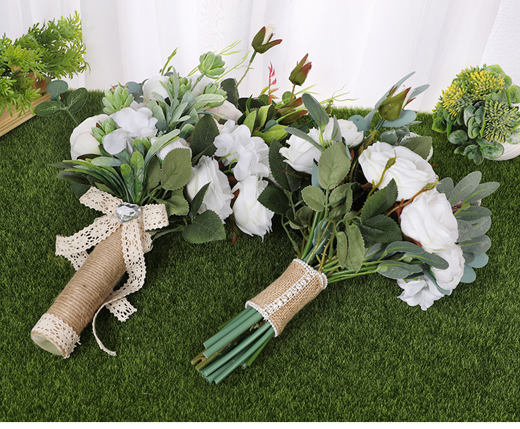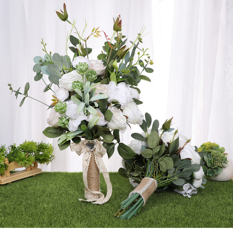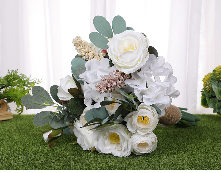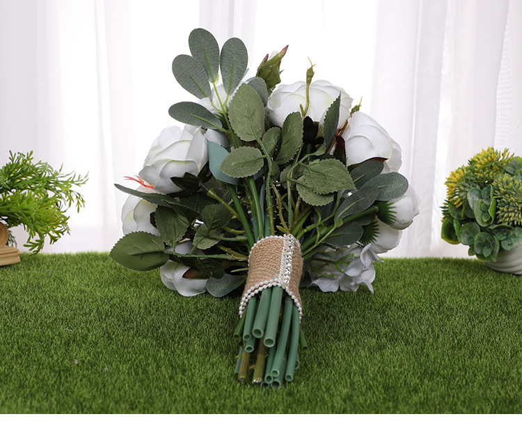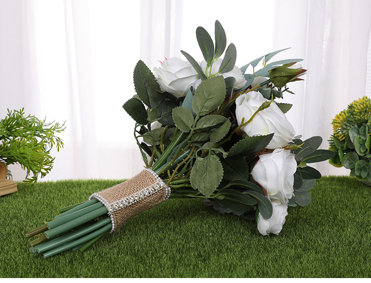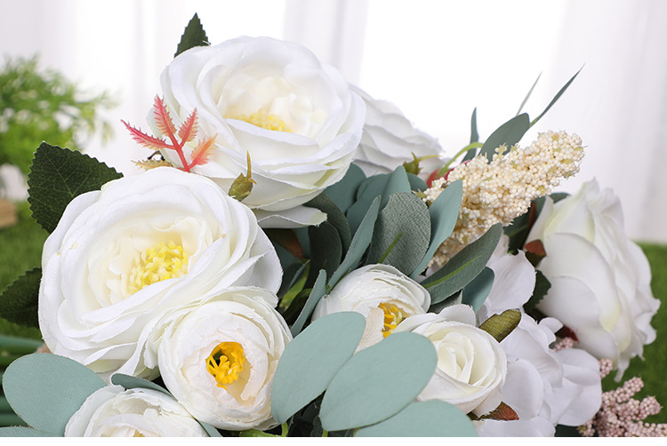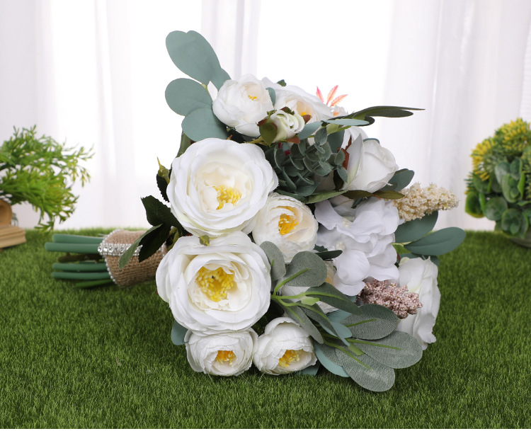 European-style simulated bride's bouquet, wedding bride's bouquet, white simulated rose, wholesale wedding supplies