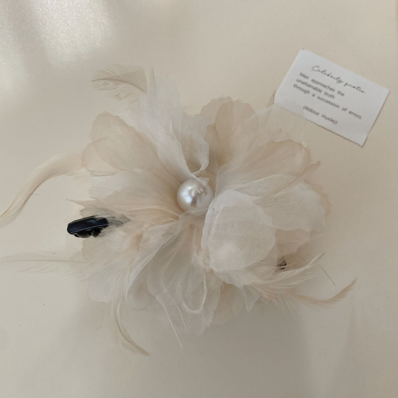 (Exclusive for the event) Free shipping! Korean version flower feather grab, pearl, large hair grab at the back of the head, elegant spring and summer updo hairpin headwear, hairpin for women