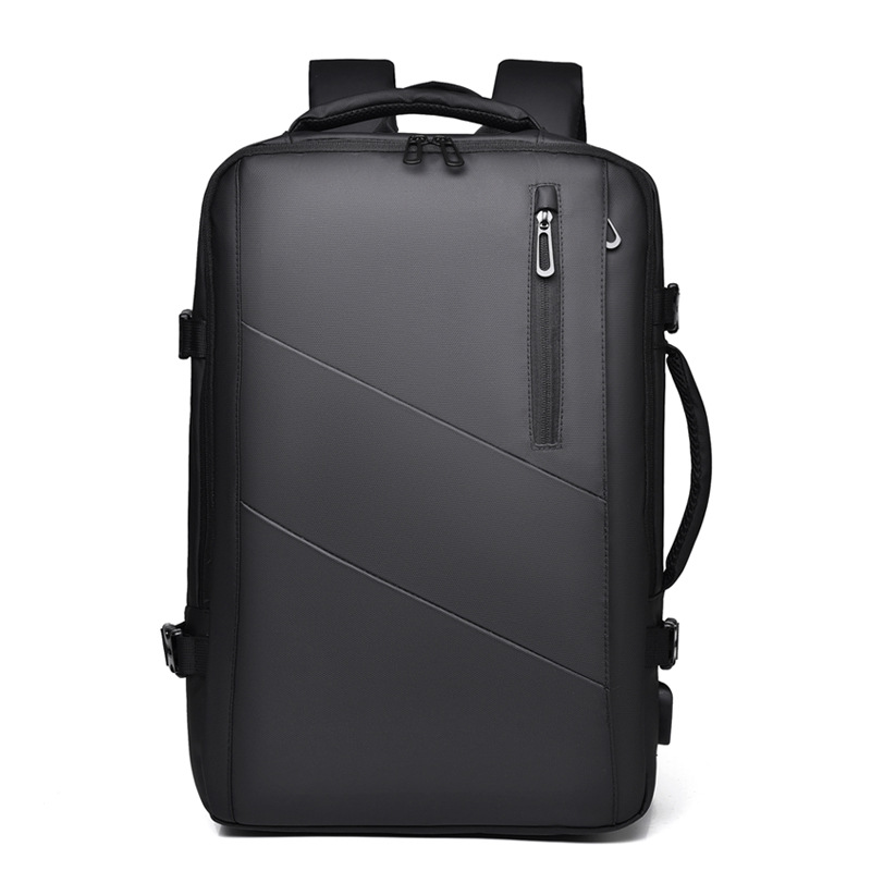 Expandable business leather film computer bag with a pull rod, large-capacity multi-functional backpack, USB interface backpack