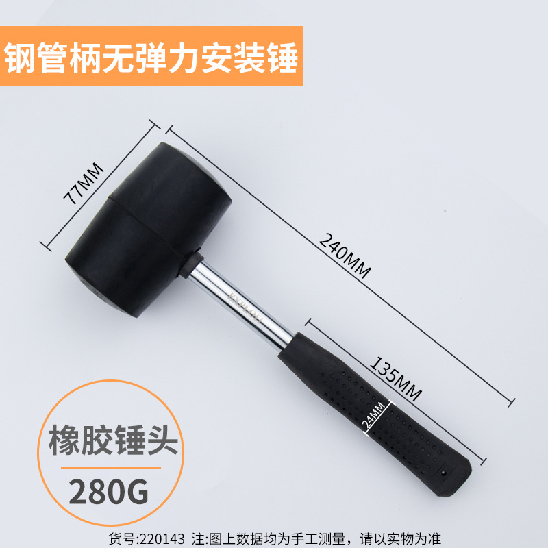 Expansion 280-730g steel pipe handle non-elastic rubber hammer, rubber hammer installation hammer, decoration tool 220143