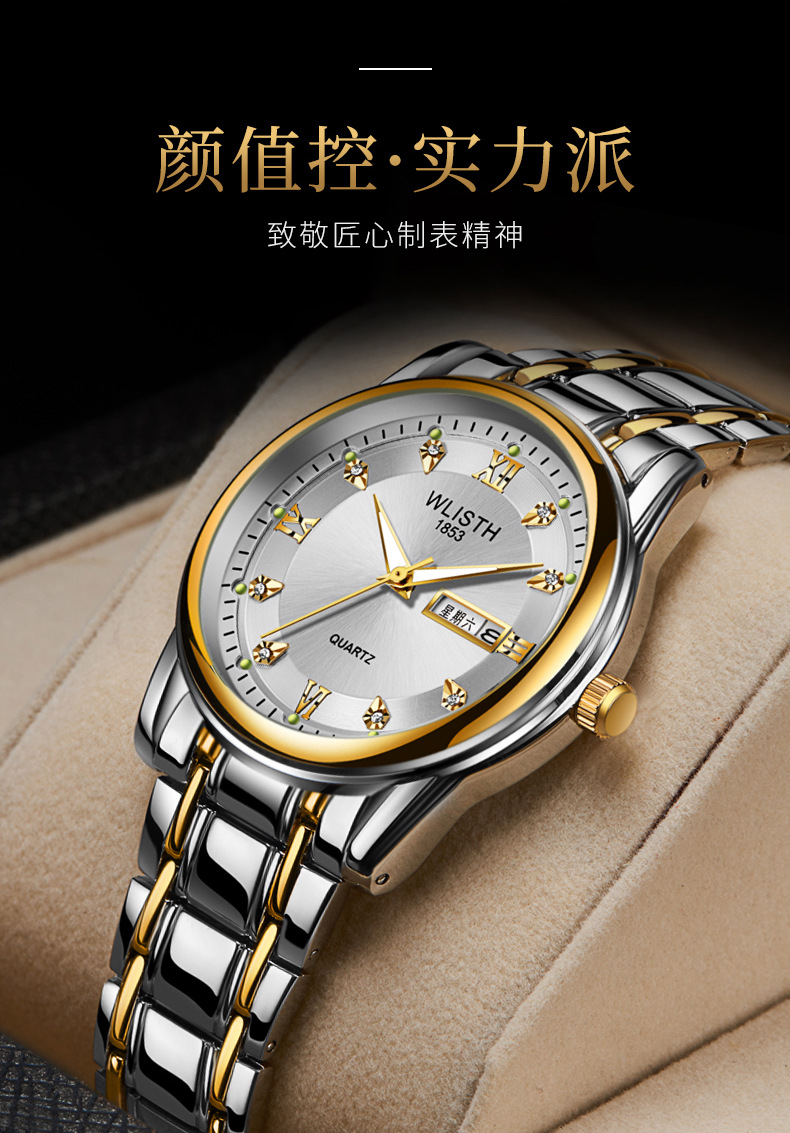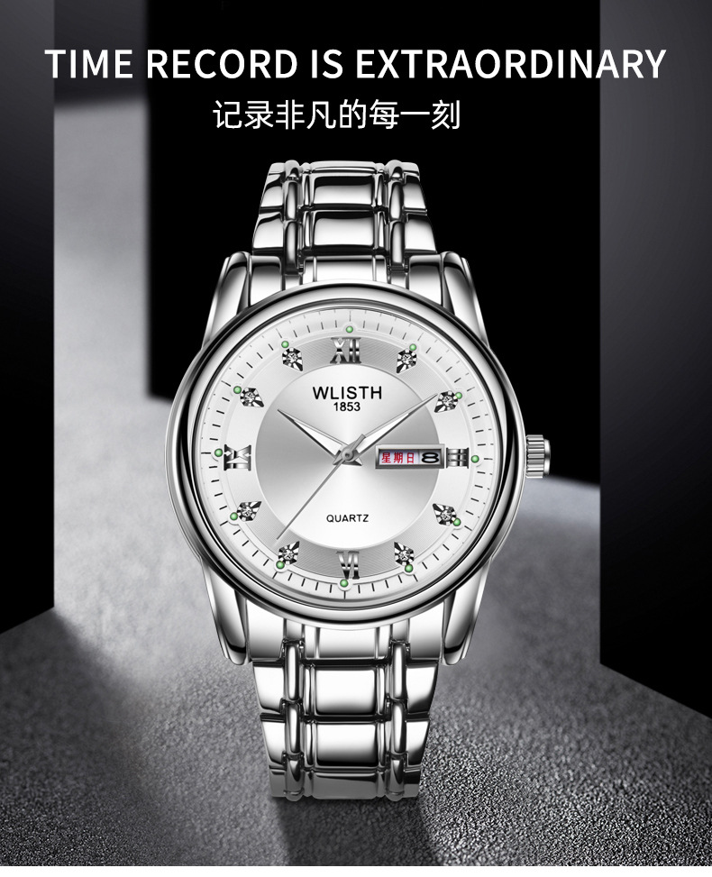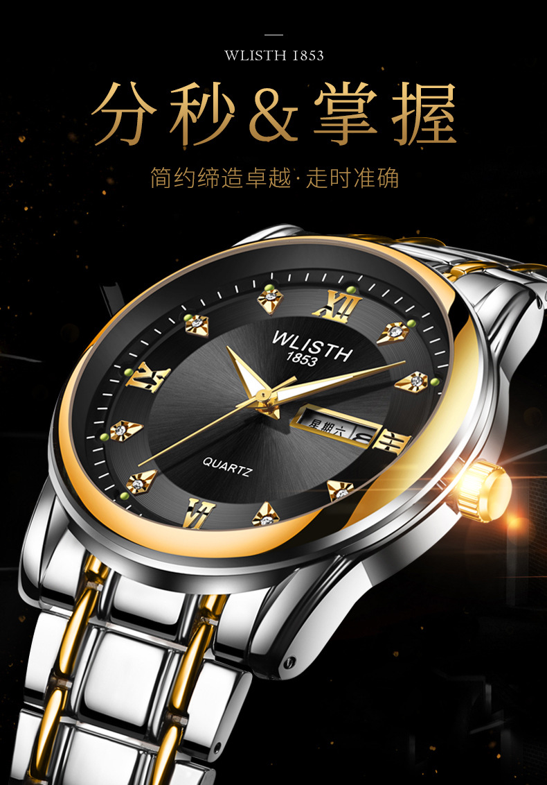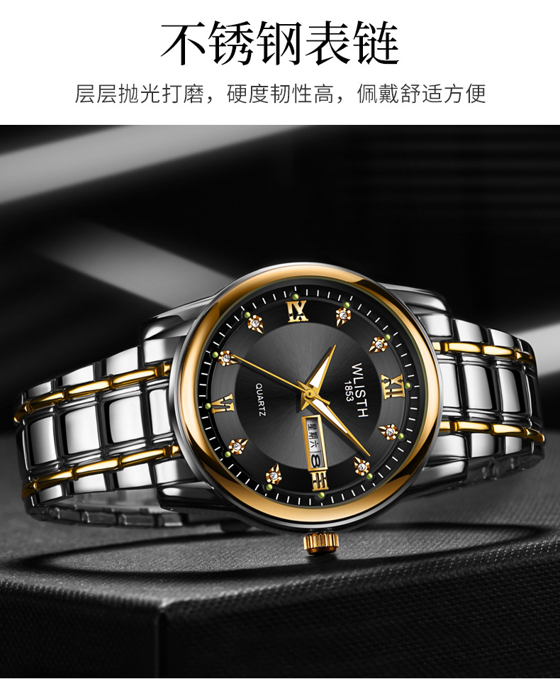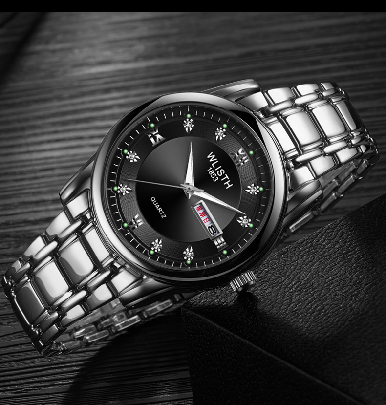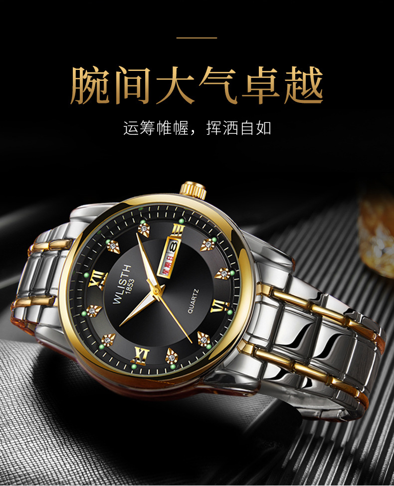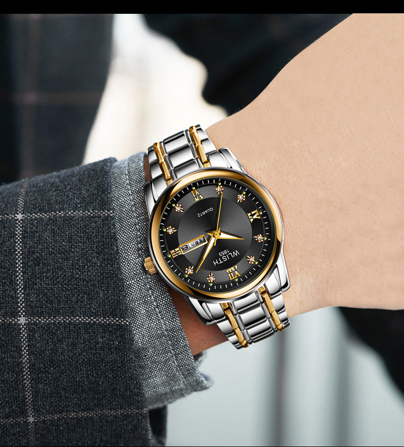 Export watch consignment, men's watches, waterproof men's watches, steel band watches, double calendar quartz watches, wholesale fashionable watches