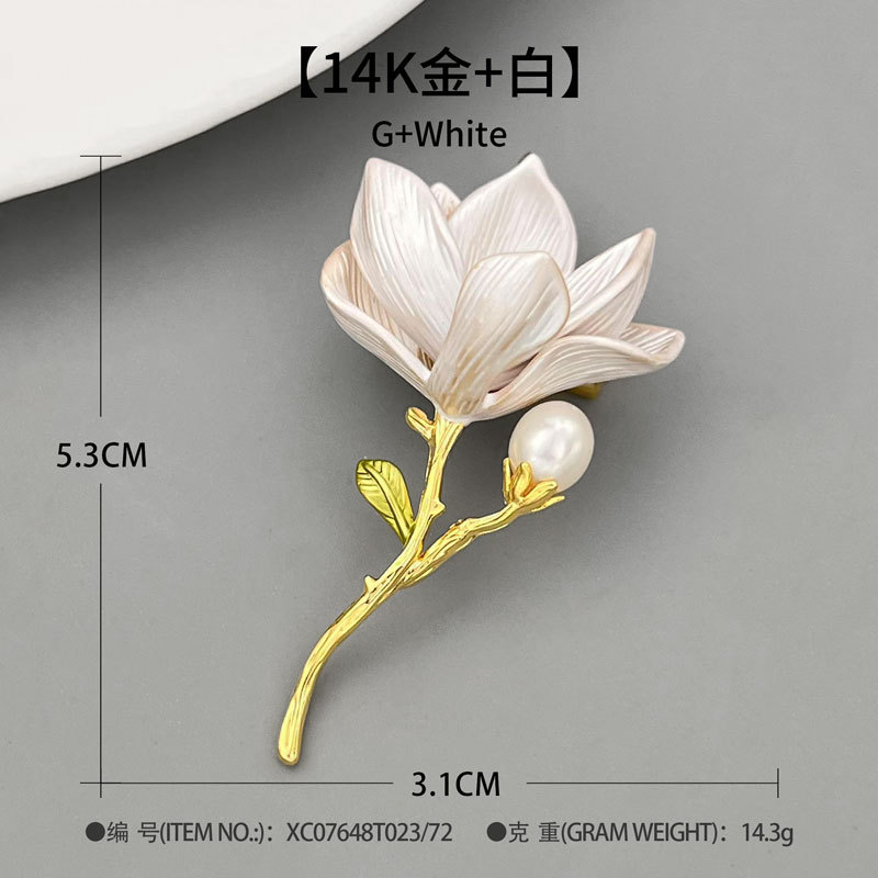 Exquisite pink magnolia flower brooch for women, fashionable and elegant enamel craftsmanship, high-end freshwater pearl brooch, traditional Chinese style brooch