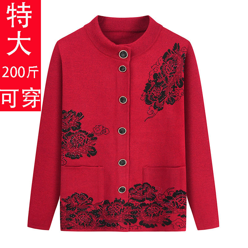 Extra-large sweaters for middle-aged and elderly people, cardigan jackets for fat moms, large-sized knitted sweaters for overweight ladies, and women