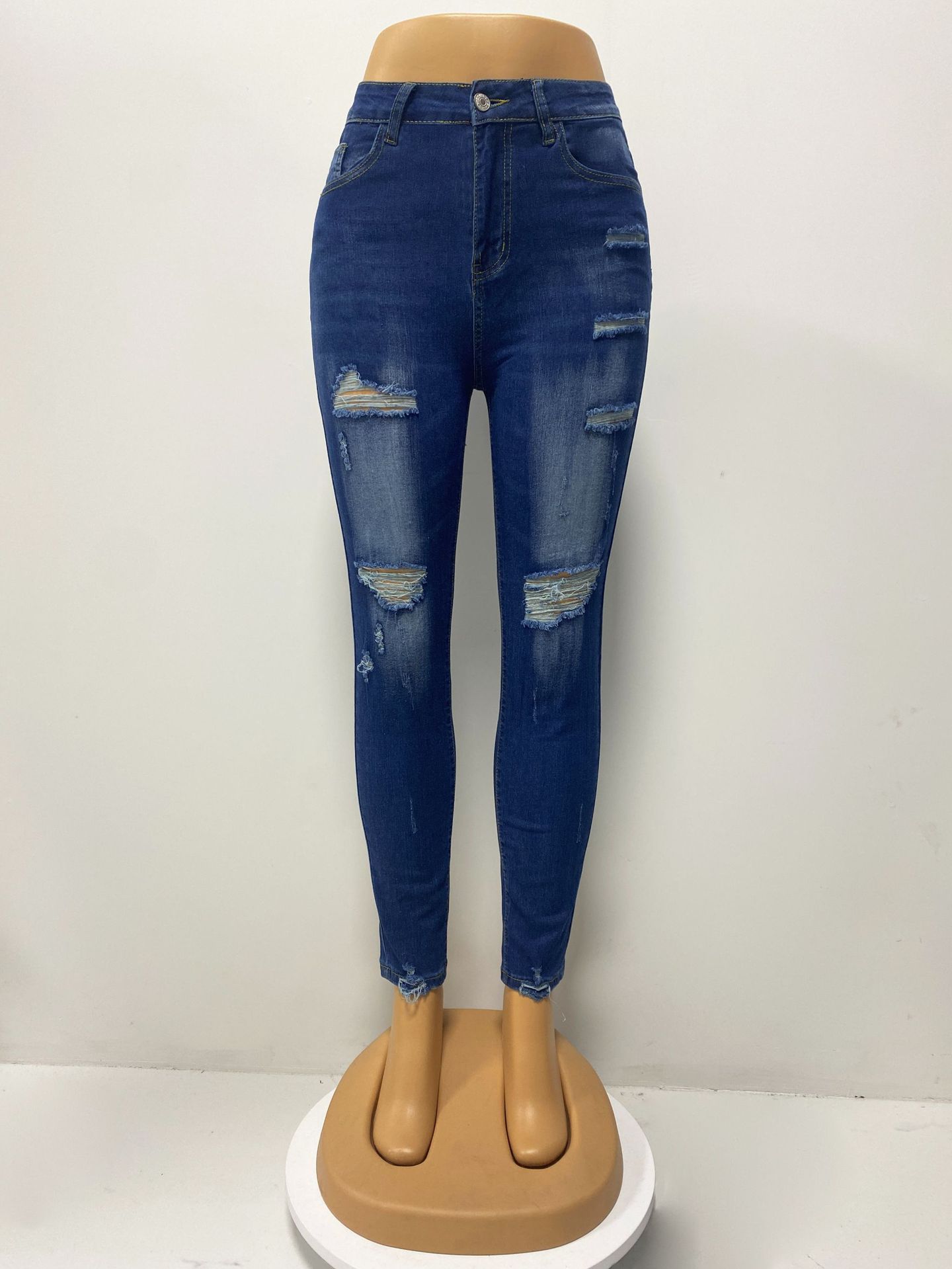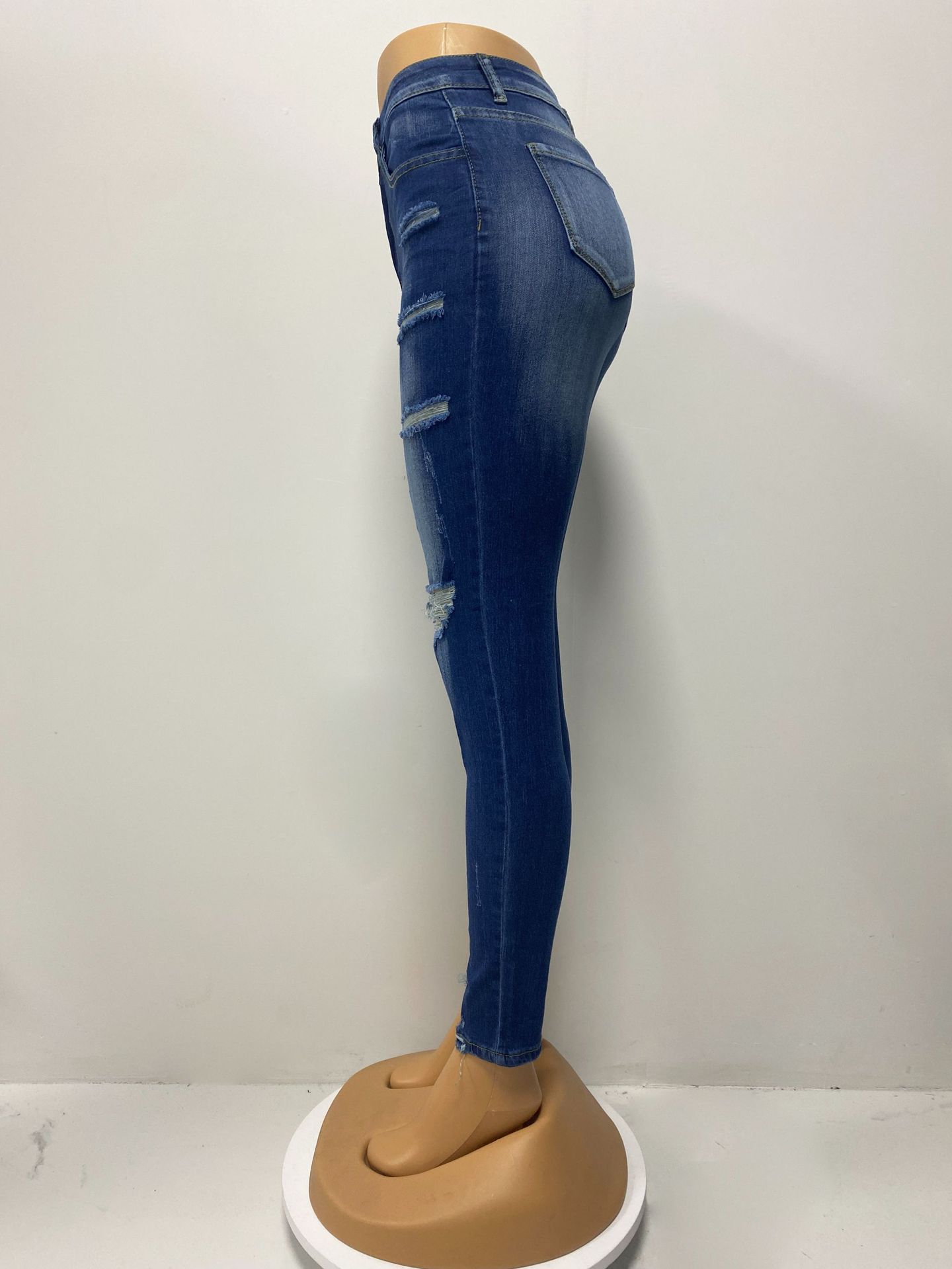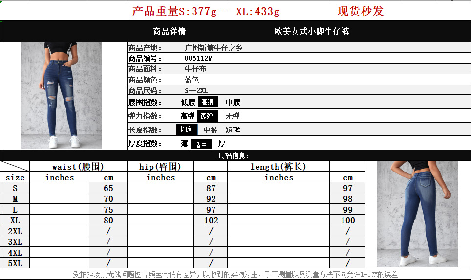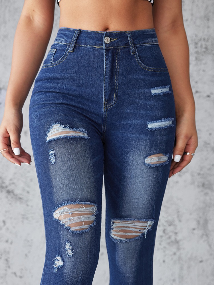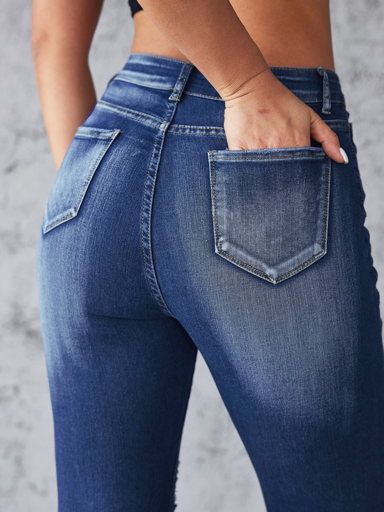 Factory direct sales 2025 European and American cross-border stretch ripped jeans, women's slimming and hip-lifting high-waisted washed long pants in stock