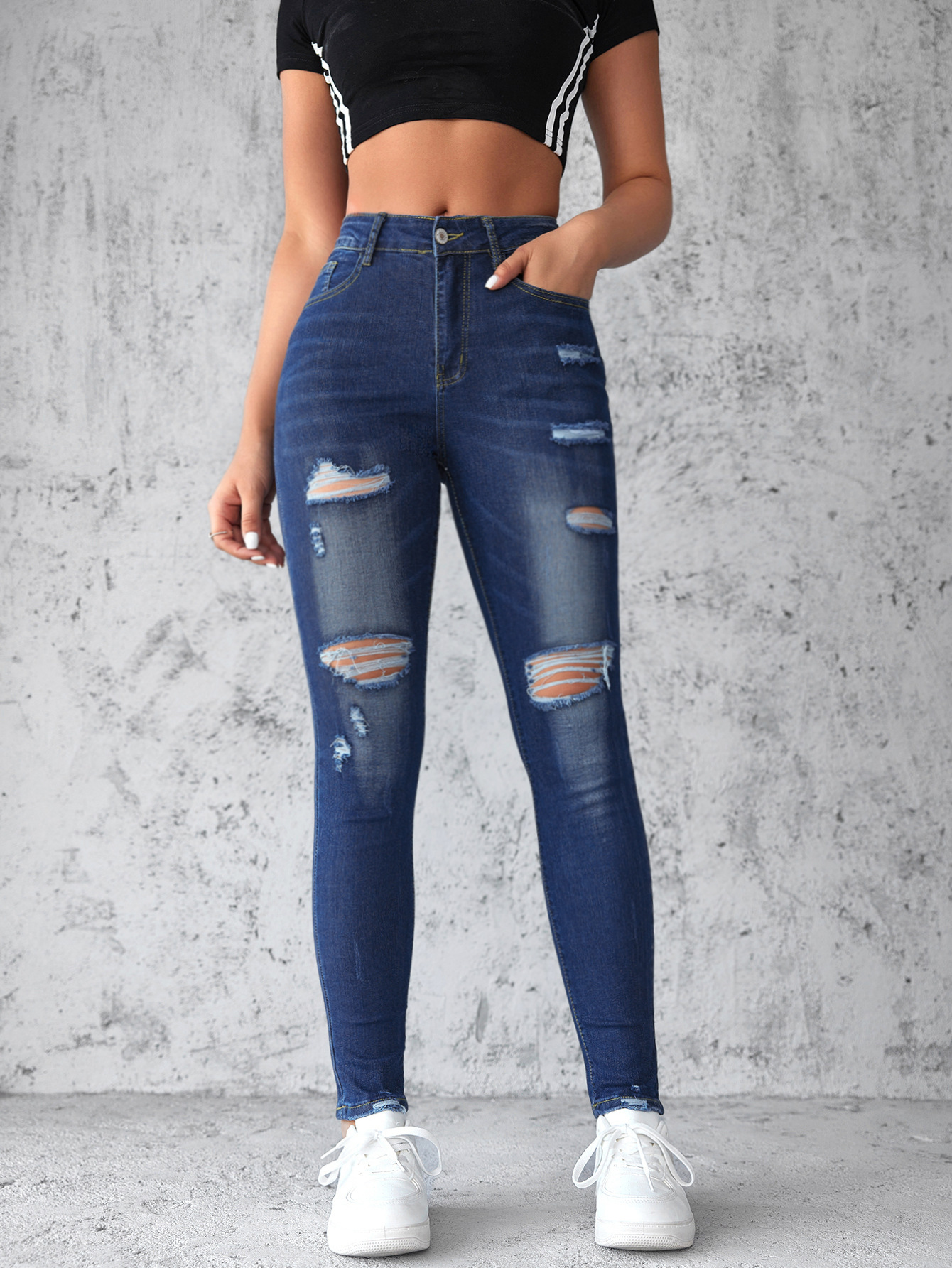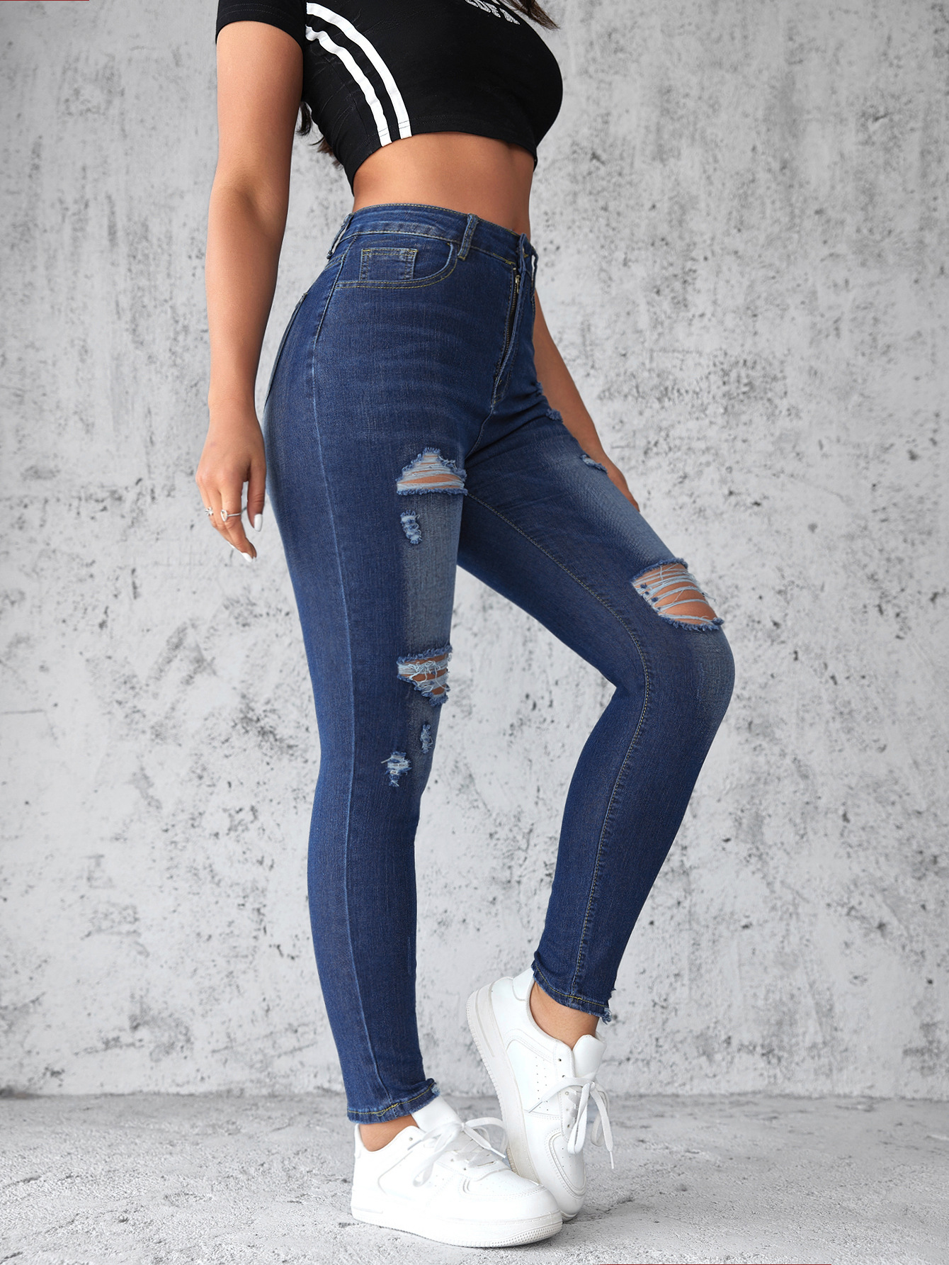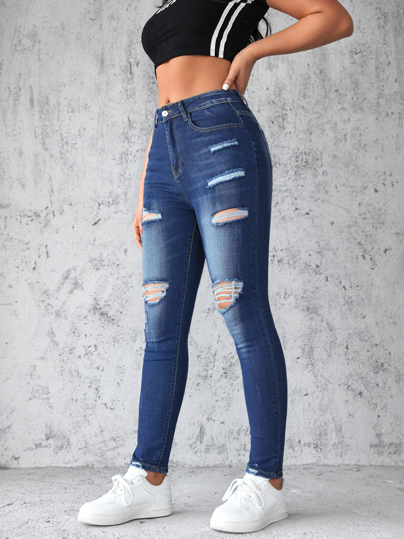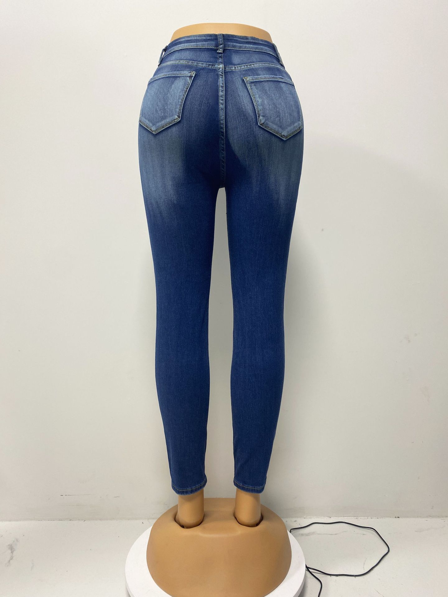 Factory direct sales 2025 European and American cross-border stretch ripped jeans, women's slimming and hip-lifting high-waisted washed long pants in stock
