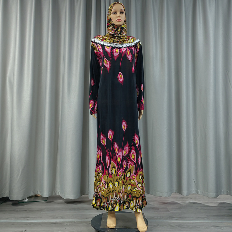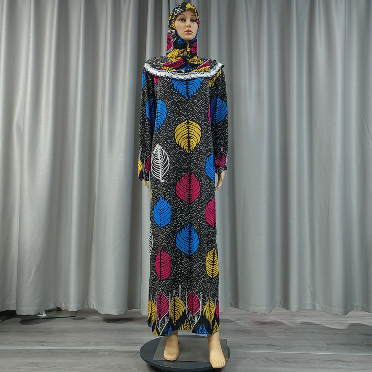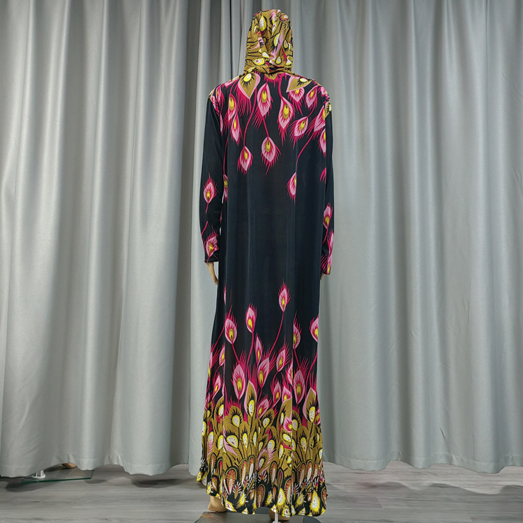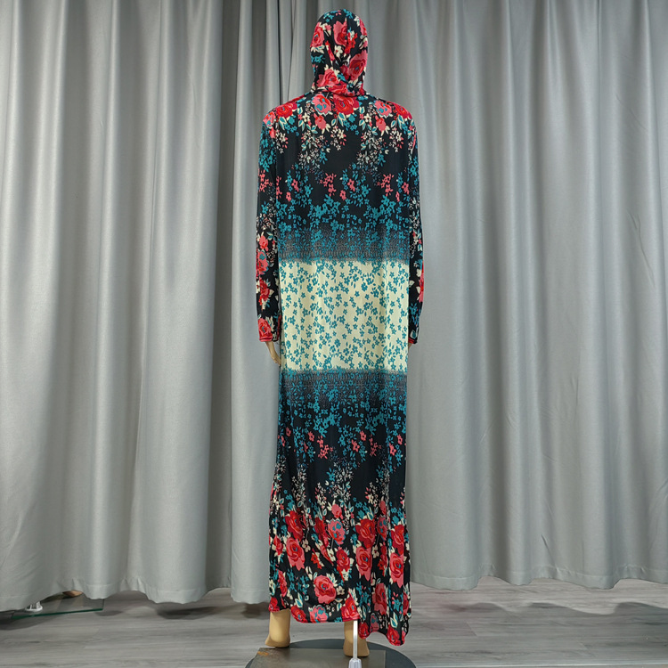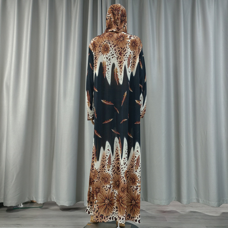 Factory direct sales and wholesale of best-selling lace long hooded printed plus-size women's fashionable and trendy daily ethnic style long robe dresses