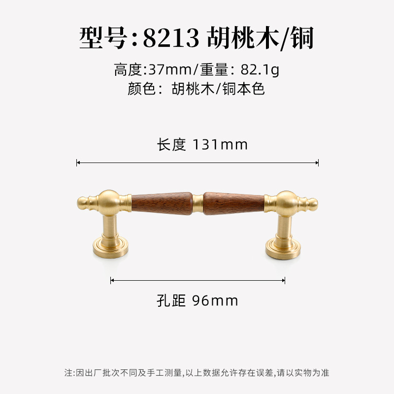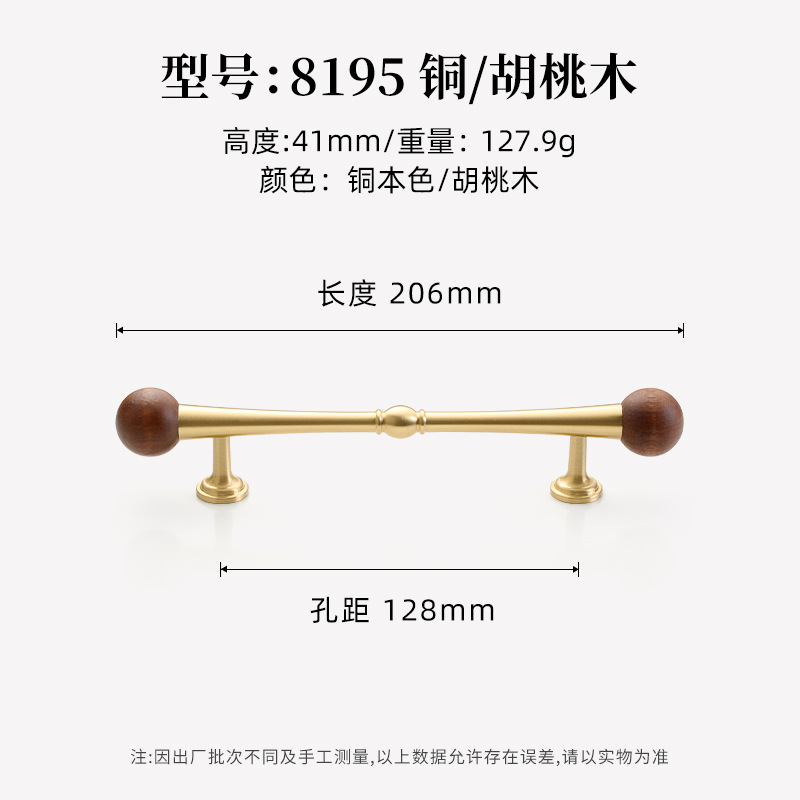 Factory direct sales of black walnut wood retro Chashi-style cabinet door handles, ancient-style solid copper wardrobe door handles