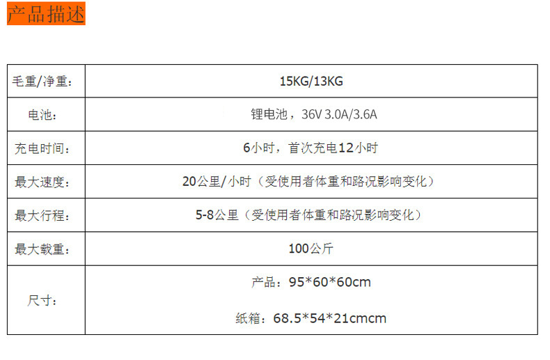 1) An additional 35 yuan is charged for water transfer printing. 2) Shock absorption +20 yuan. 3) telescopic +20 yuan. 4)+70 yuan for Yongkang spray. 5) 100 yuan for Shenzhen spray. 6) An additional 50 yuan for timed remote control function. 7) One 36V battery +150 yuan (dual batteries).