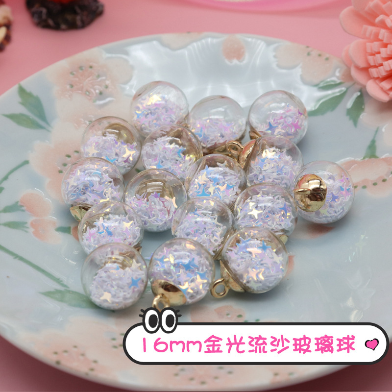 Factory direct sales of Golden Light flowing sand glass ball pendants, headwear, bags, mobile phone buckles, pendants, DIY earrings, accessories