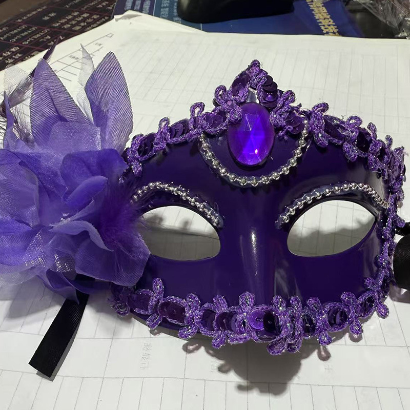 Factory direct sales of Halloween masks, masquerade balls, Big Hundred flowers princess masks for women, half face with feathers and flowers