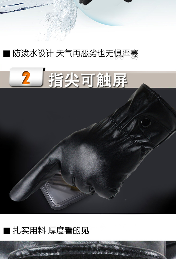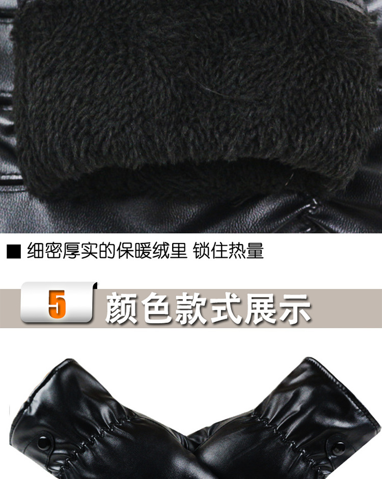 Product Description: Made of PU leather fabric with fleece lining for warmth, it can be worn with a touch screen while playing with a mobile phone