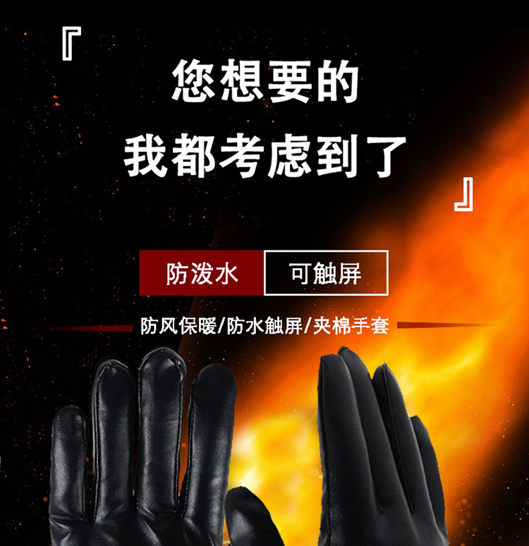 Factory direct sales of men's PU touch screen leather gloves, winter touch screen women's fleece imitation leather fleece cycling warm gloves wholesale