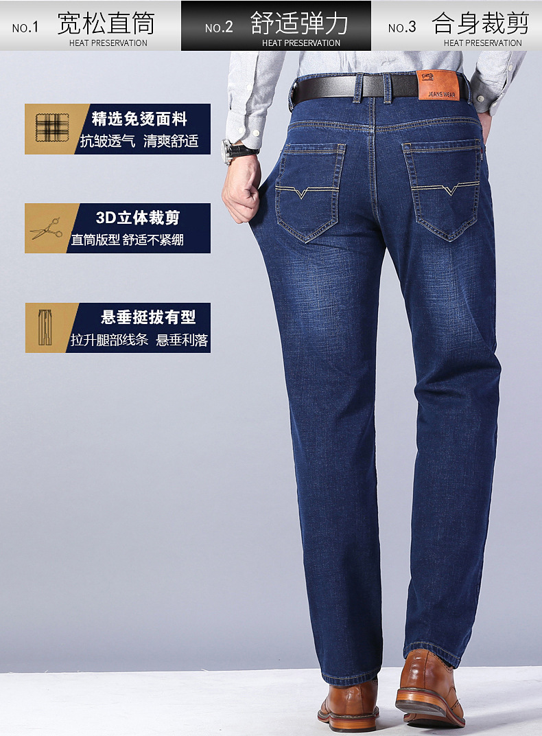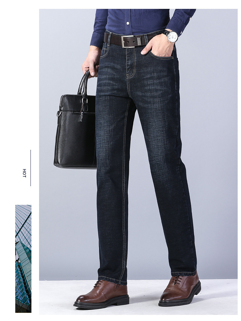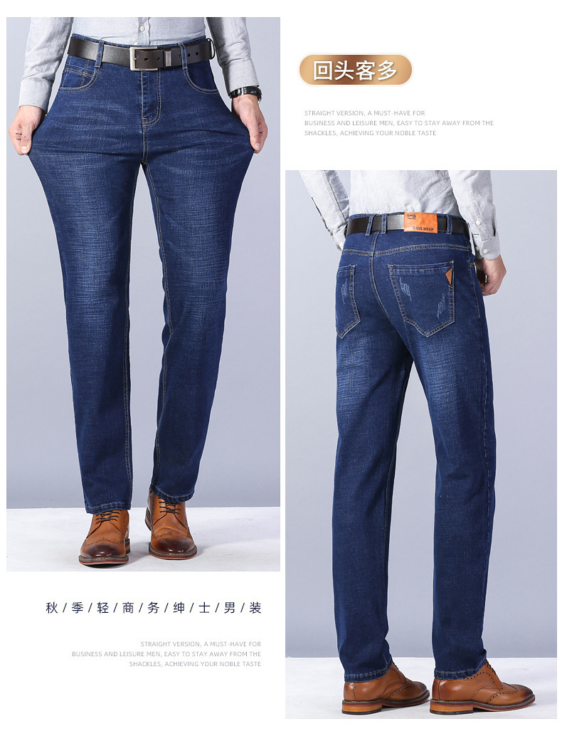 Factory direct sales of men's spring and autumn straight-leg high-quality stretch business casual men's denim trousers wholesale