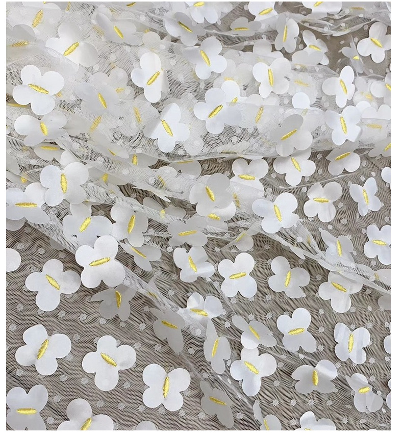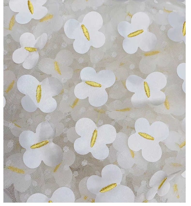Factory direct sales of new mesh three-dimensional embroidered fabric for spring and summer girls' dresses and evening gowns embroidered fabric