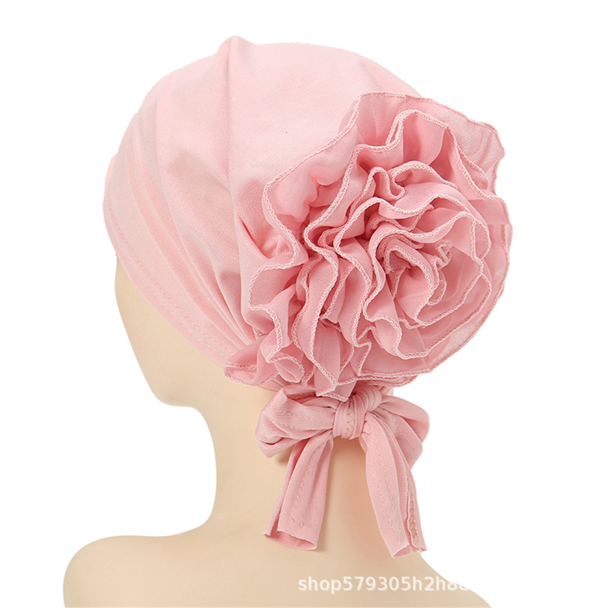 Factory direct sales of new single-color Muslim chiffon large-cap flower hats, headscarves and Arab headscarves for European and American foreign trade