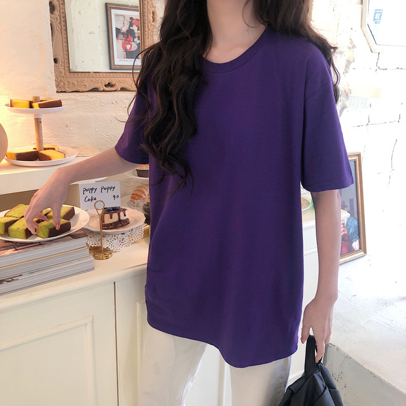 Factory direct sales of short-sleeved T-shirts for women, 2021 new spring and summer, round neck loose, versatile for students, base layer top, trendy on Instagram