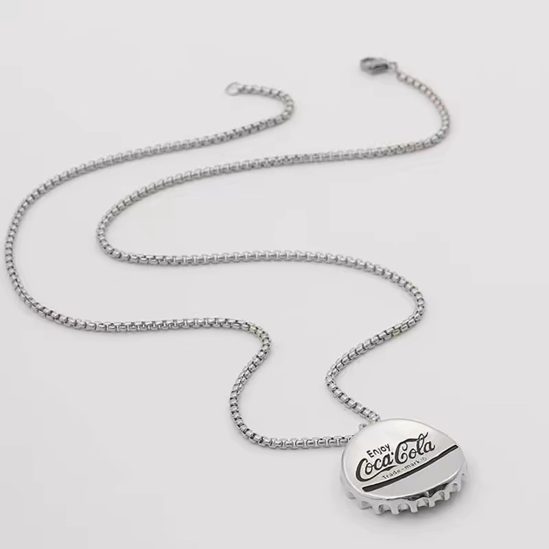 Factory direct sales of trendy brand bottle cap necklaces for men and women, long ins style punk hip-hop pendants, fashionable retro and cool accessories
