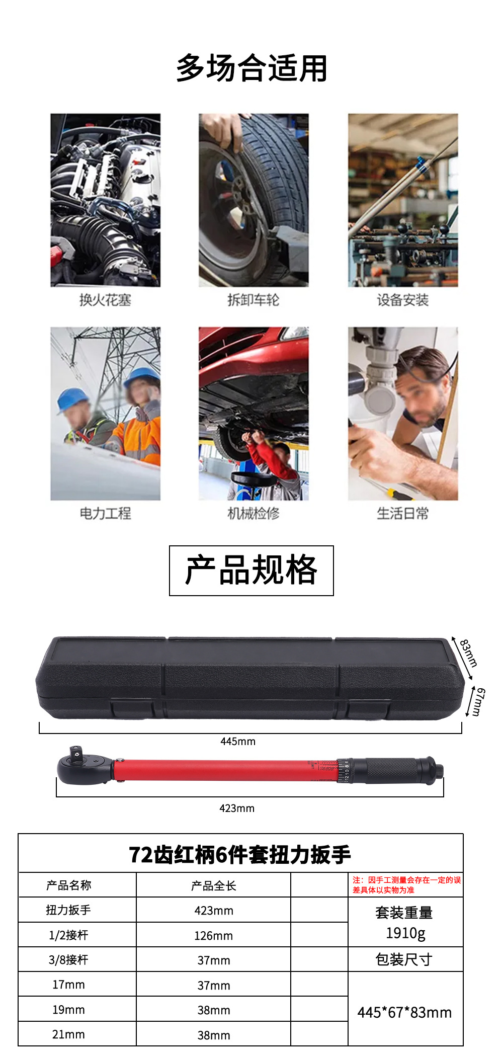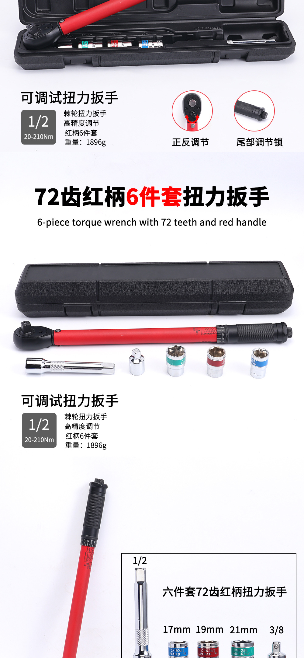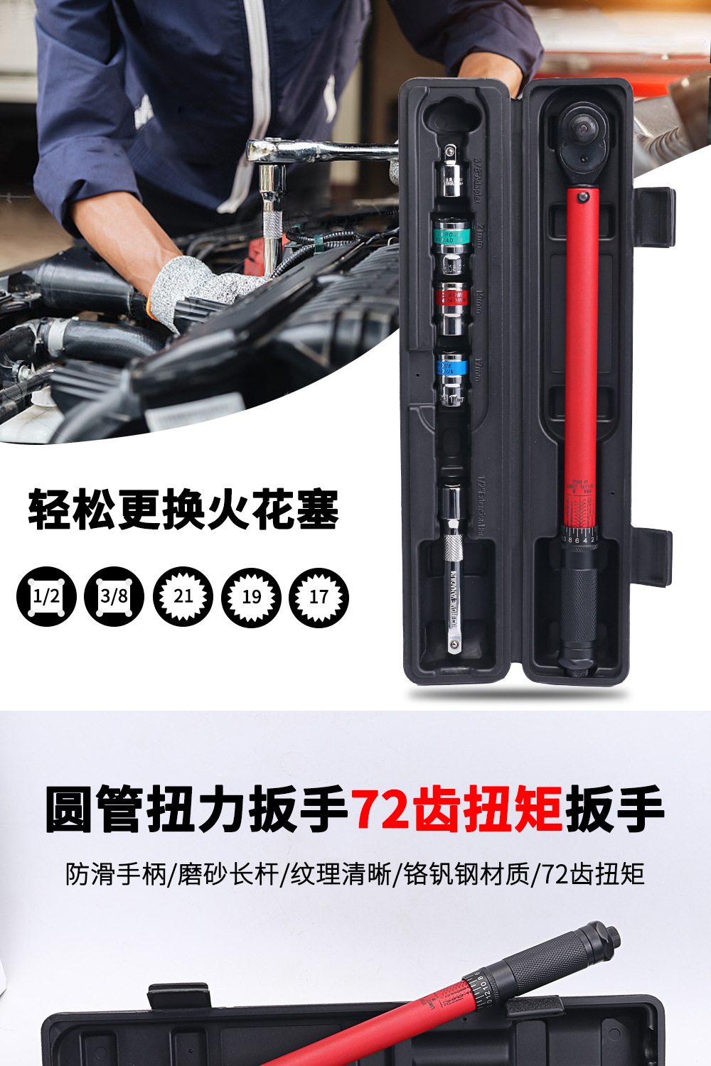 Factory direct supply of round pipe torque wrench, 72-tooth torque wrench, 1/2" 20-230N.m spark plug torque wrench