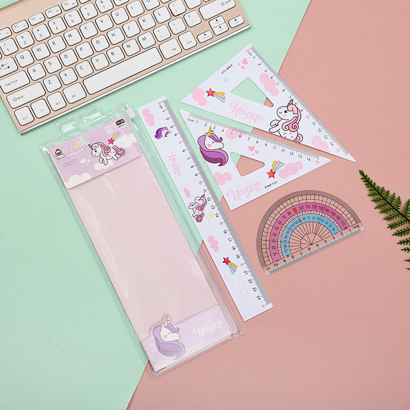 Factory direct supply ruler set for students, cute and girlish four-piece ruler set, simple and fresh