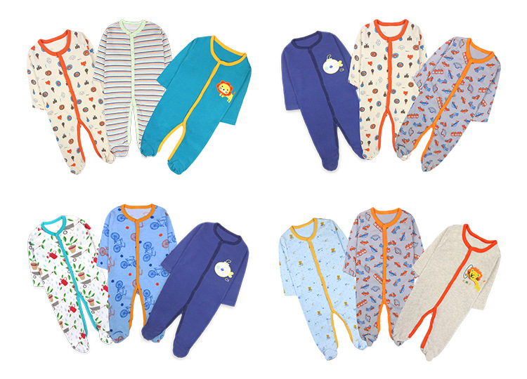 Factory export wholesale of baby clothes, spring and autumn foot coverings, one-piece suits, long-sleeved thick crawling suits, and children's clothing for boys and girls