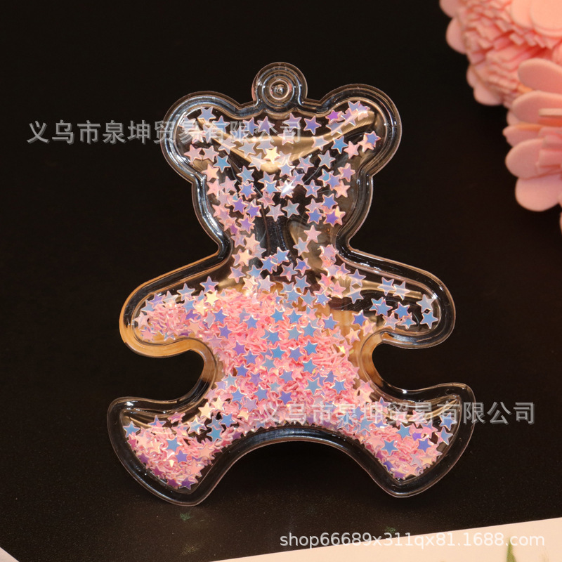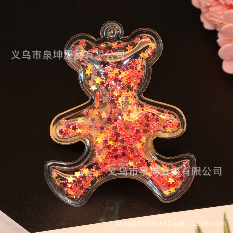 Factory PVC cartoon transparent flowing sand golden light sheet bear DIY jewelry accessories keychains car clothing pendants