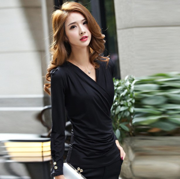Factory slimming plate-size women's top, form-fitting base layer, sexy mini top, low-cut cross-V-neck long-sleeved T-shirt to cover the belly