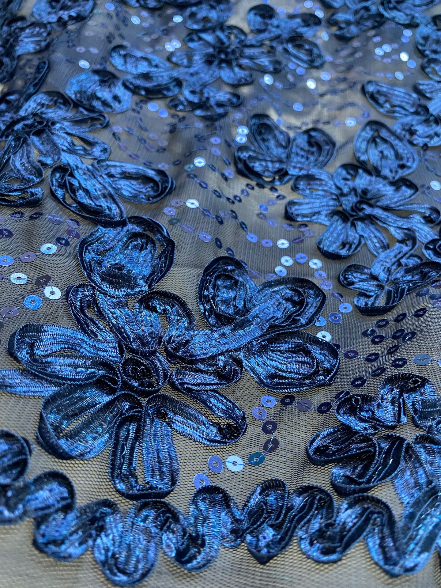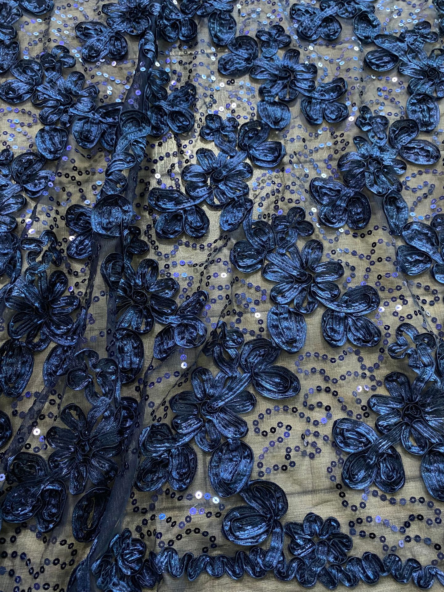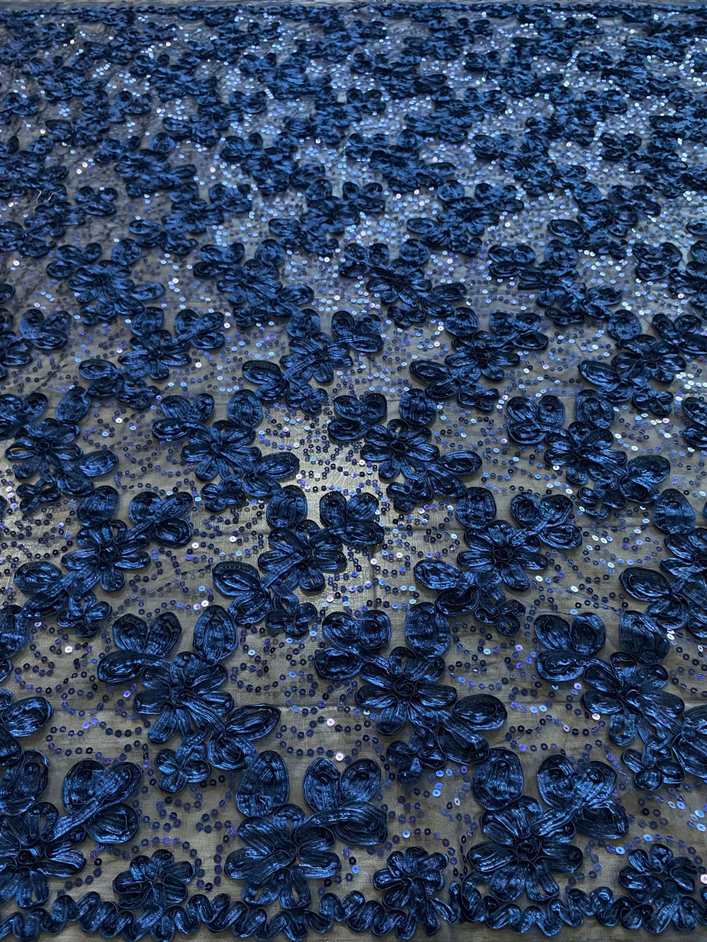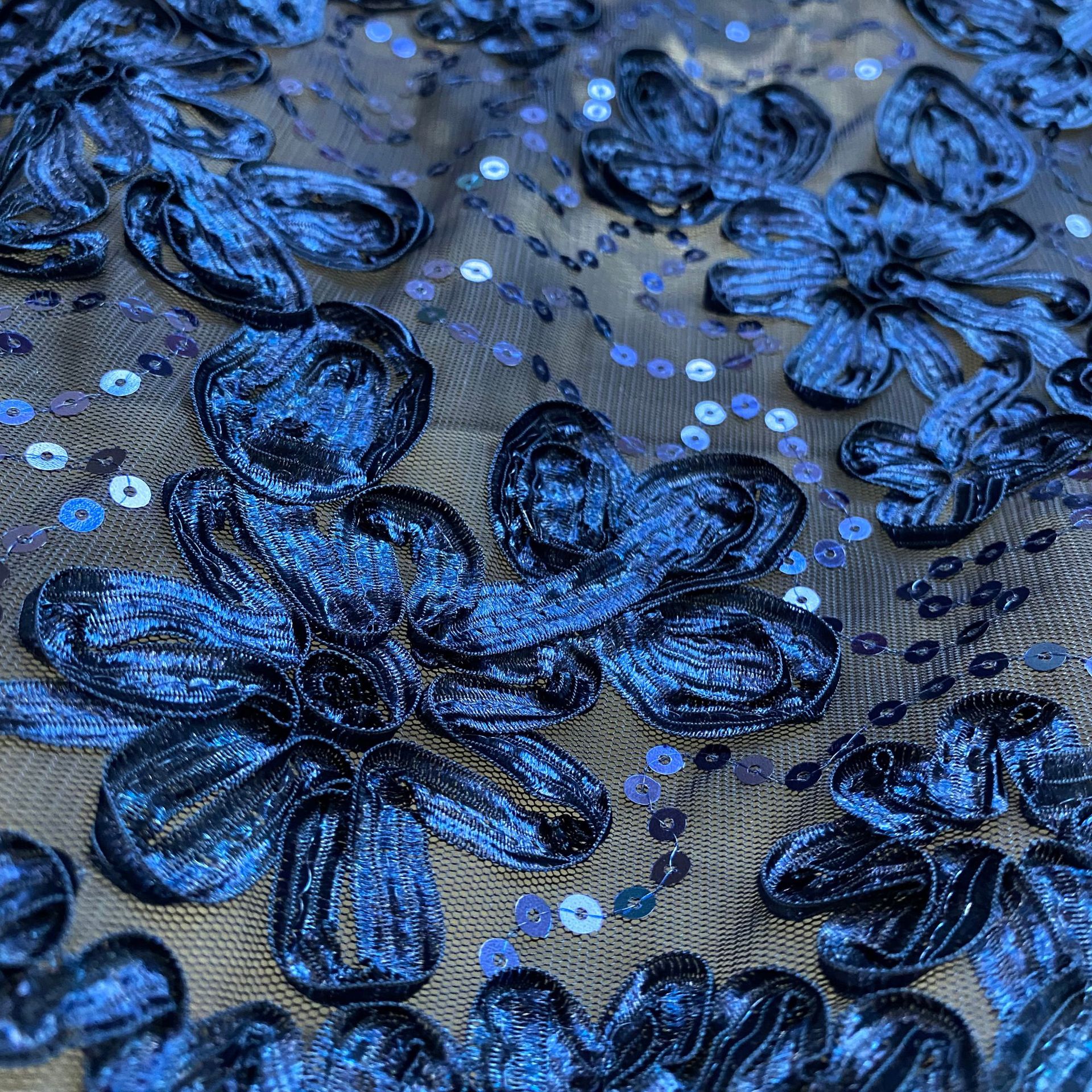 Factory stock of three-dimensional ribbon embroidered fabric, sequined lace fabric, flower-embroidered mesh fabric for women's evening gowns