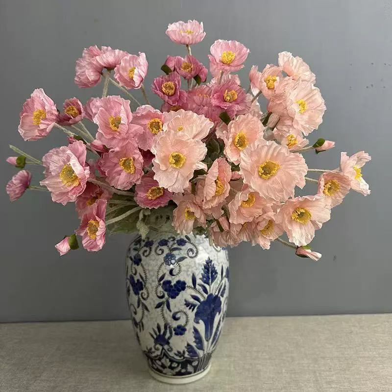 Factory store artificial flowers: 4 poppies, velvet flowers, home soft furnishings, wedding flower art, artificial flowers, fish beauty vase flowers
